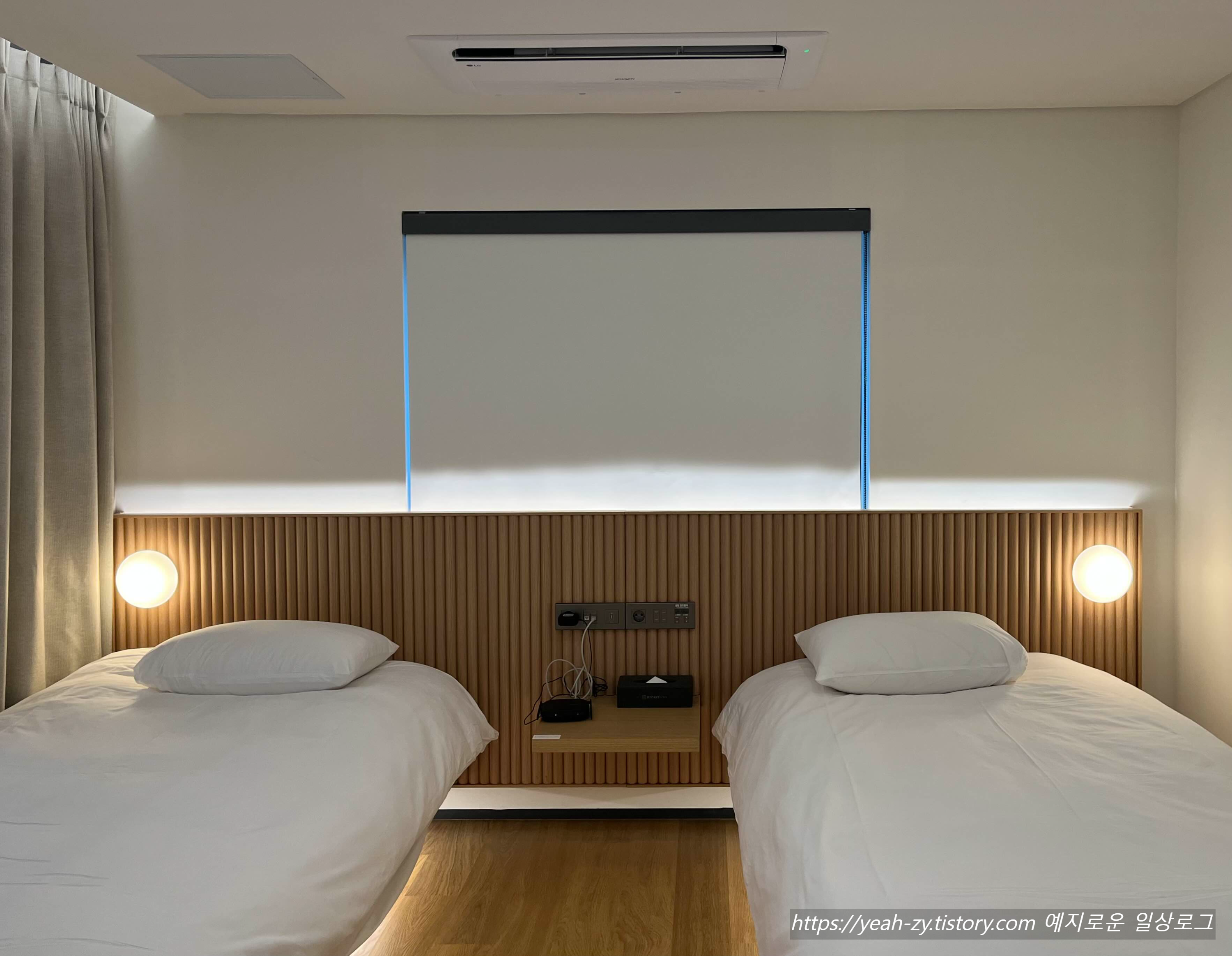 가장 안쪽엔 트윈베드 룸이 있는데, 두 명이 쓸 수 있는 넓은 방이에요