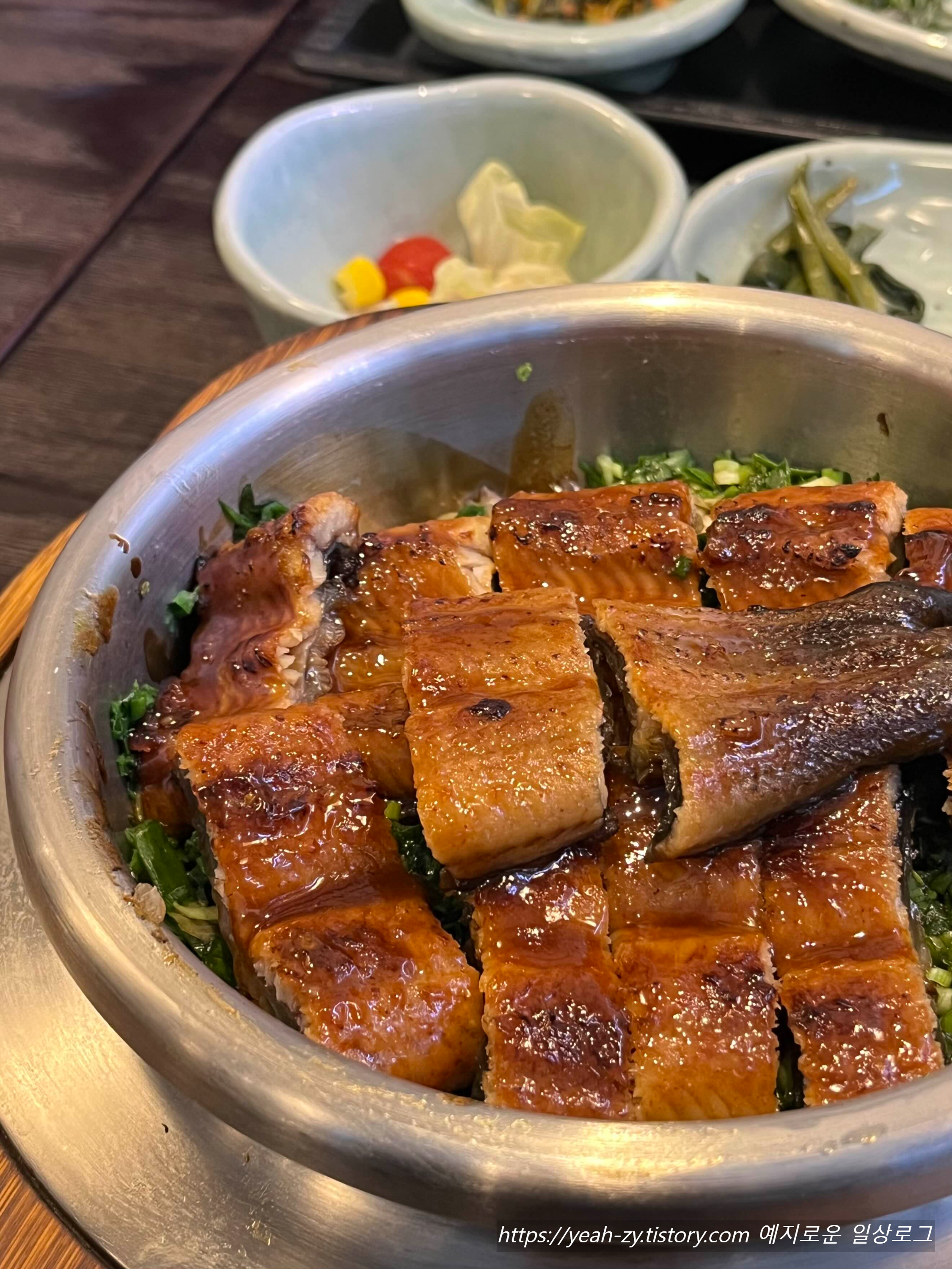 일단 솥뚜껑을 열자마자 밥 위에 올라간 양념장어 양이 꽤 많아 보여서 놀람🫢