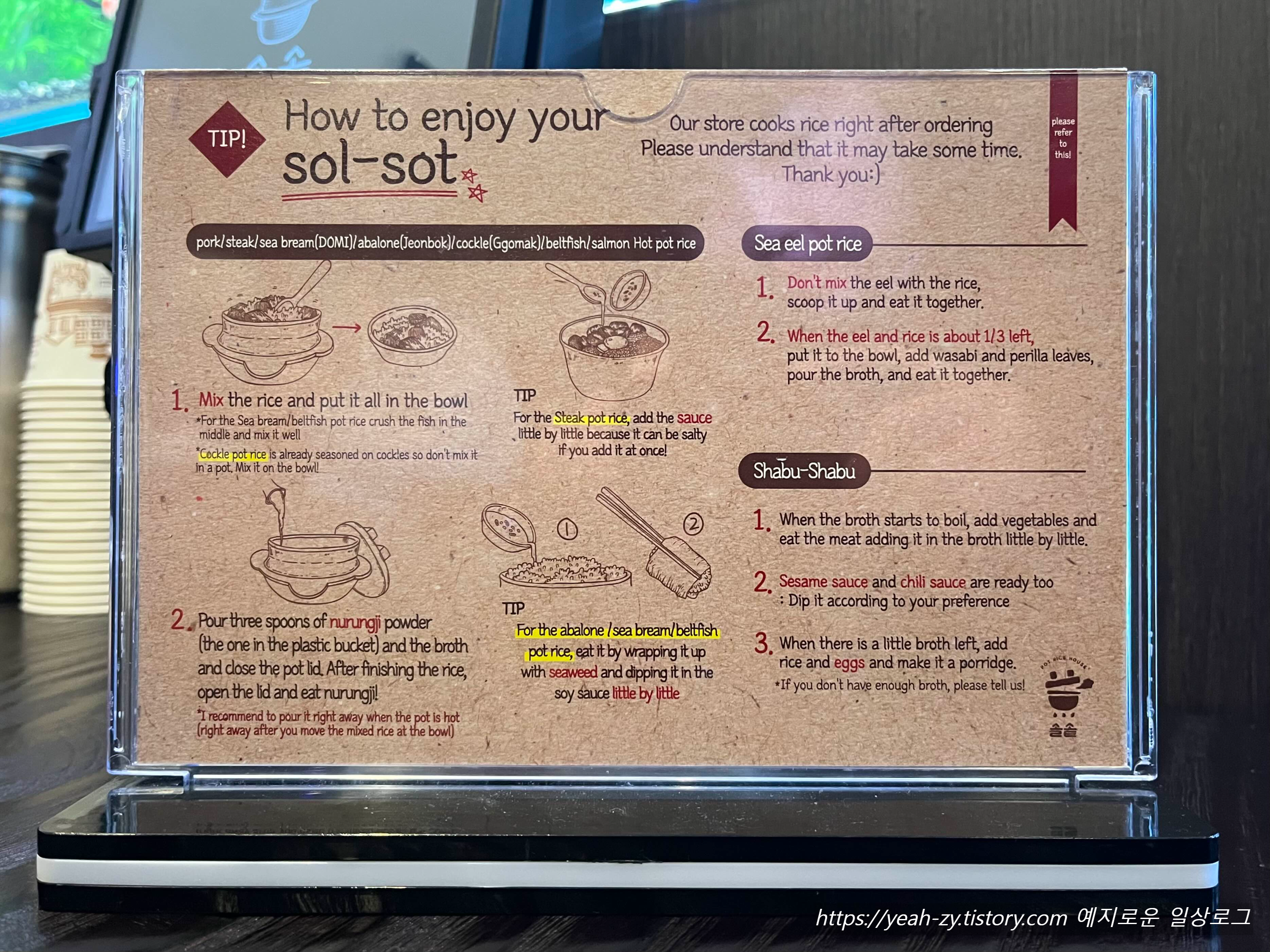 솔솥 메뉴판