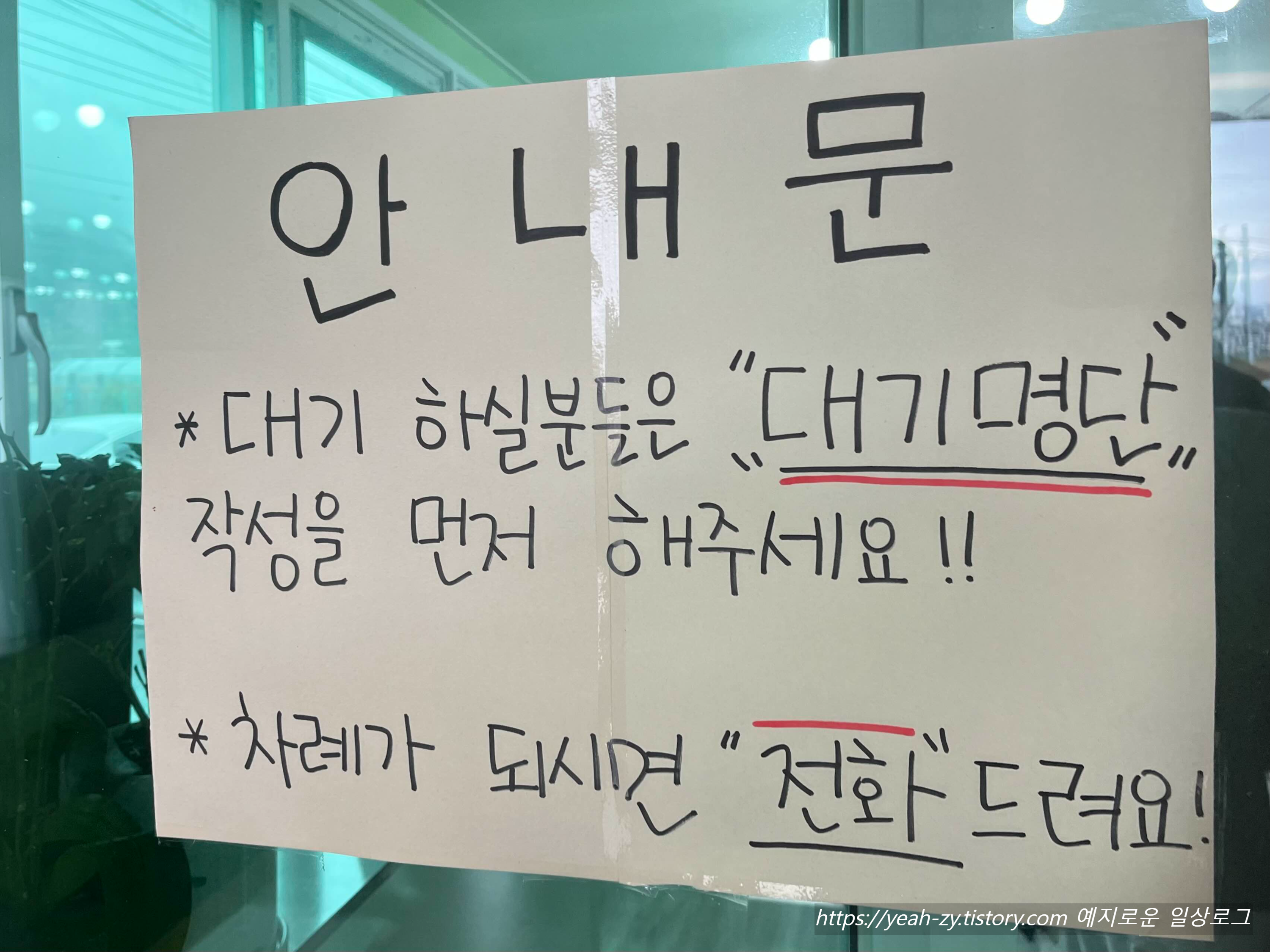 대기가 있으면 대기명단 먼저 빠르게 작성해 주세요