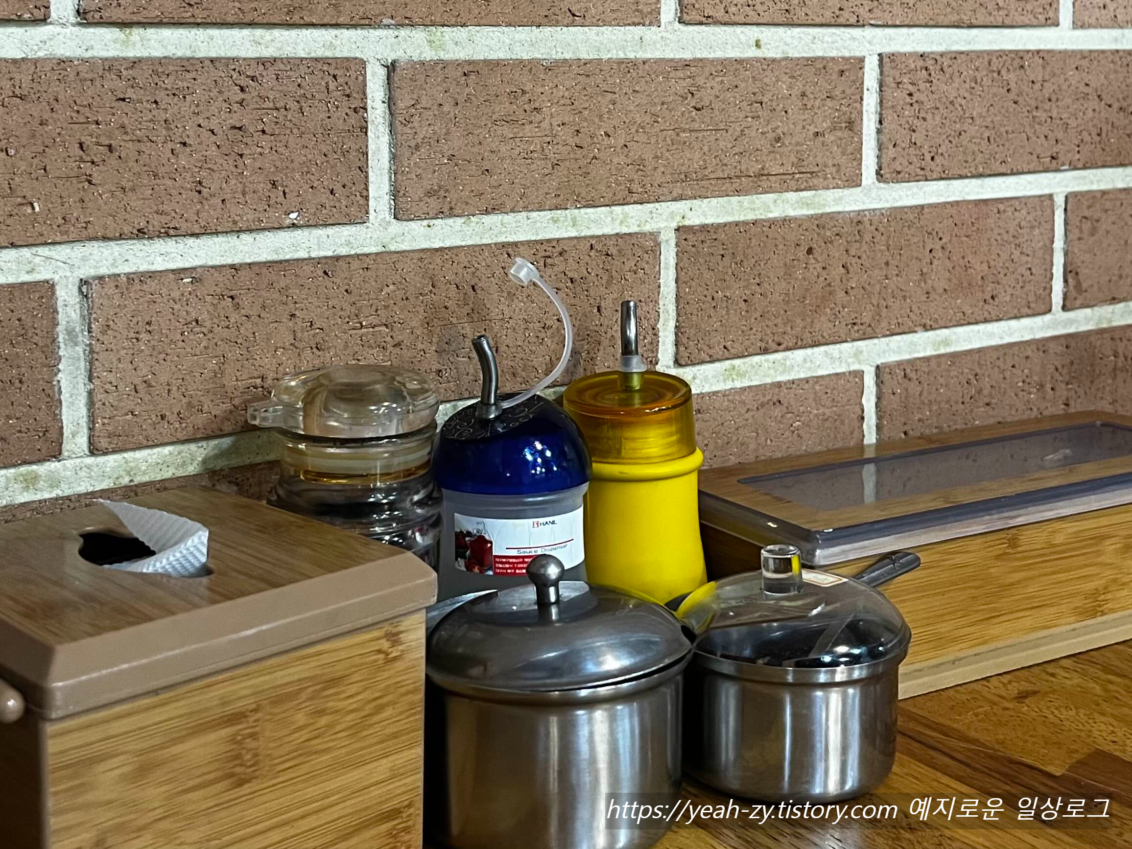 테이블에 없는 조미료나 기타 추가반찬은 홀 가운데에 있는 셀프 테이블을 이용해 주시면 됩니다
