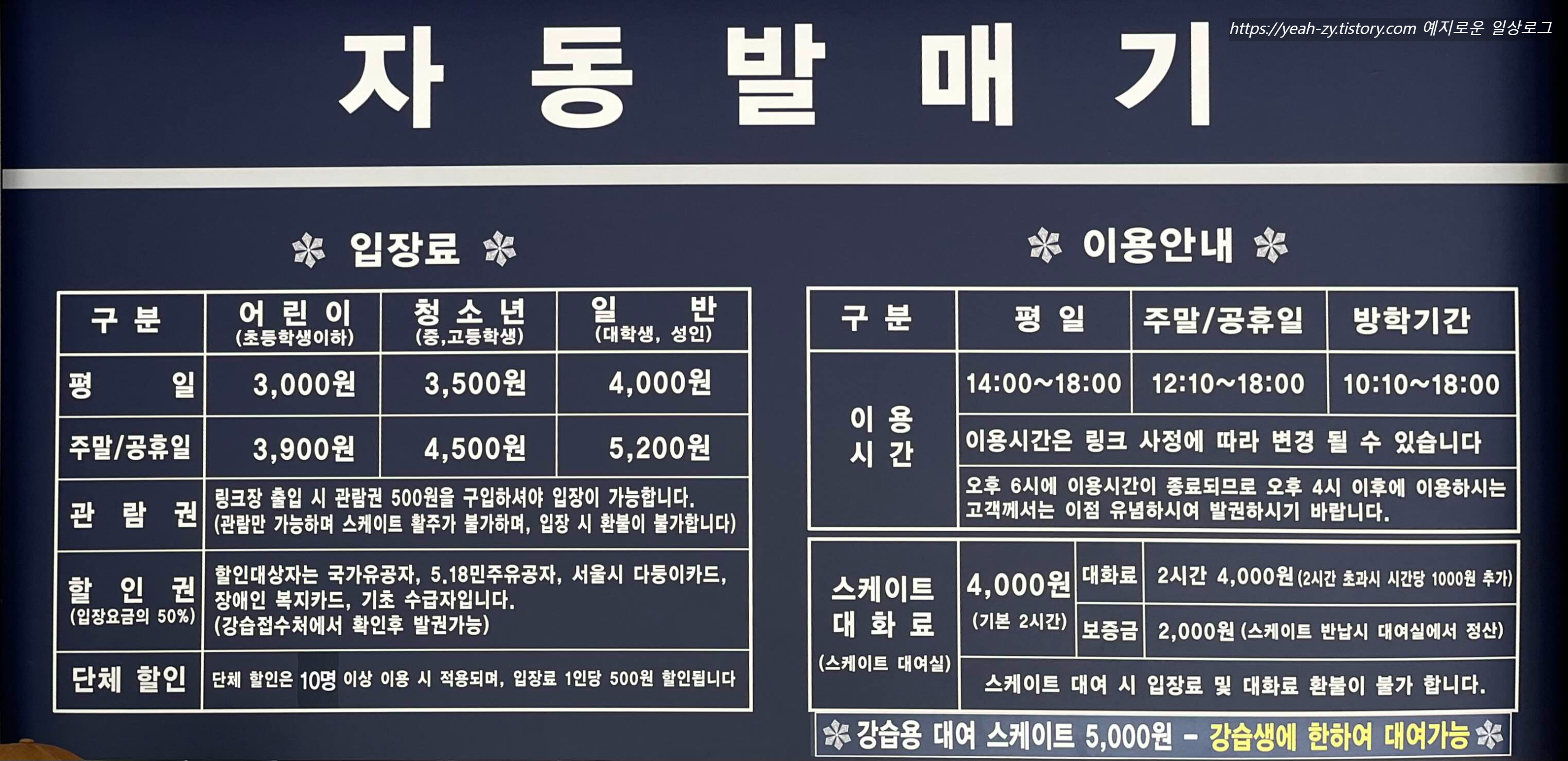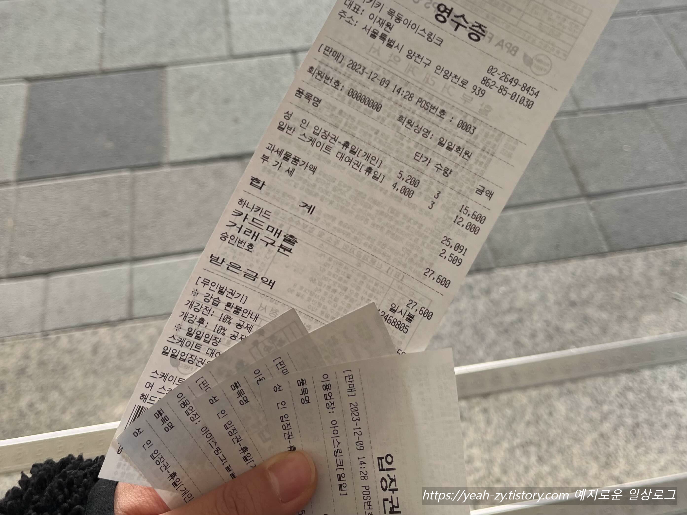 무인발권기에서 결제한 입장권과 스케이트 대여 영수증을 꼭 챙겨주세요🧾