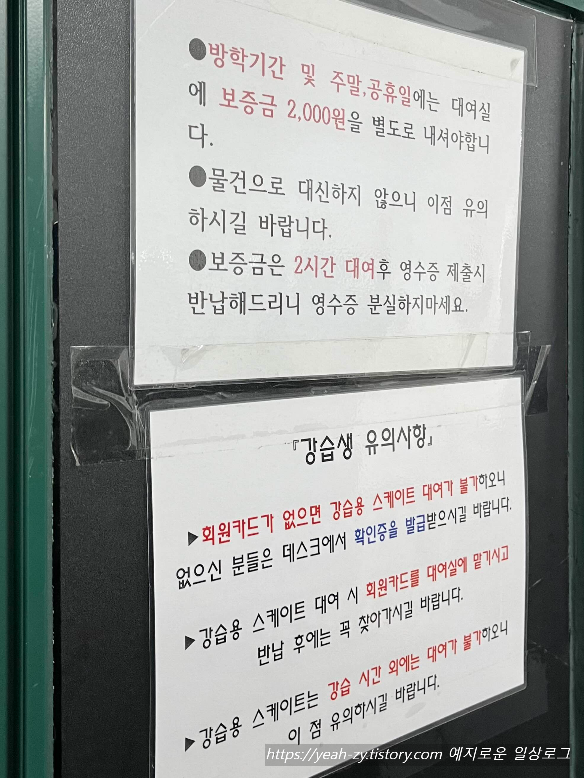 방문 전 블로그를 찾아보니까 스케이트 대여 보증금이라는 게 있는데 무조건 현금만 가능하다고 하더라고요