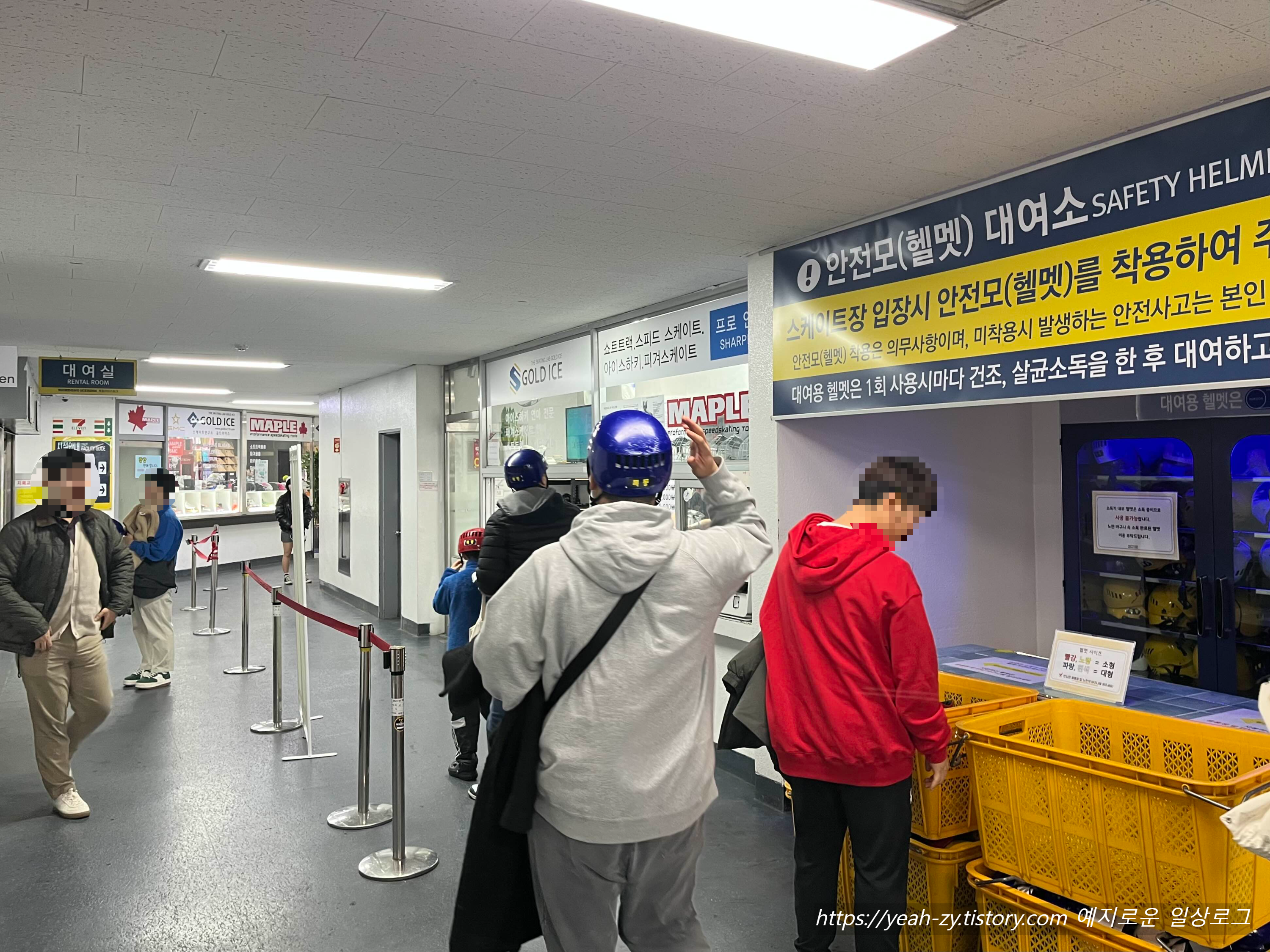 헬멧을 착용하고 바로 건너편에 위치한 스케이트 대여장으로 왔어요⛸️