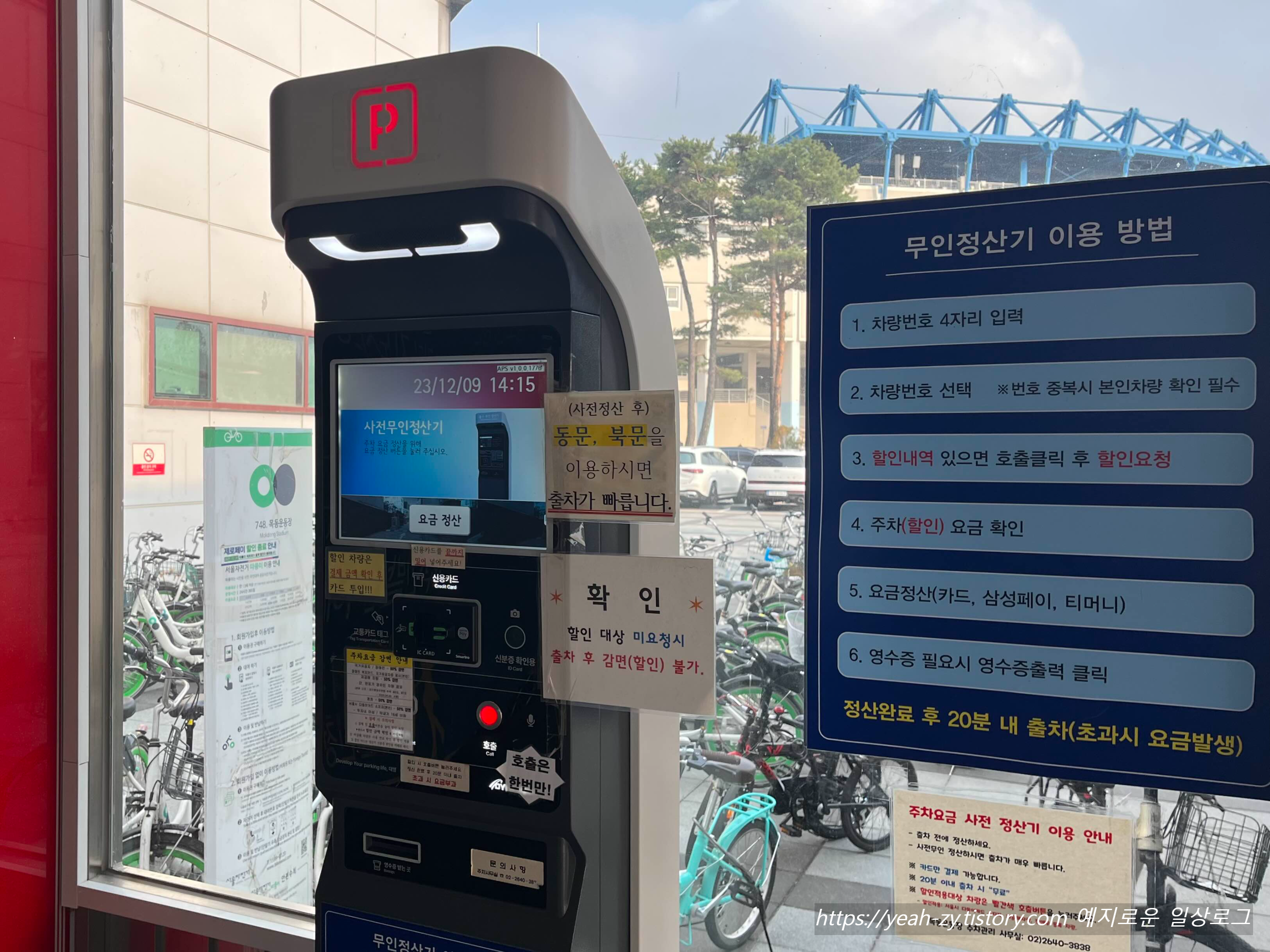 주차는 나가기 전 입구에 있는 사전 무인정산기를 이용해 주시면 됩니다