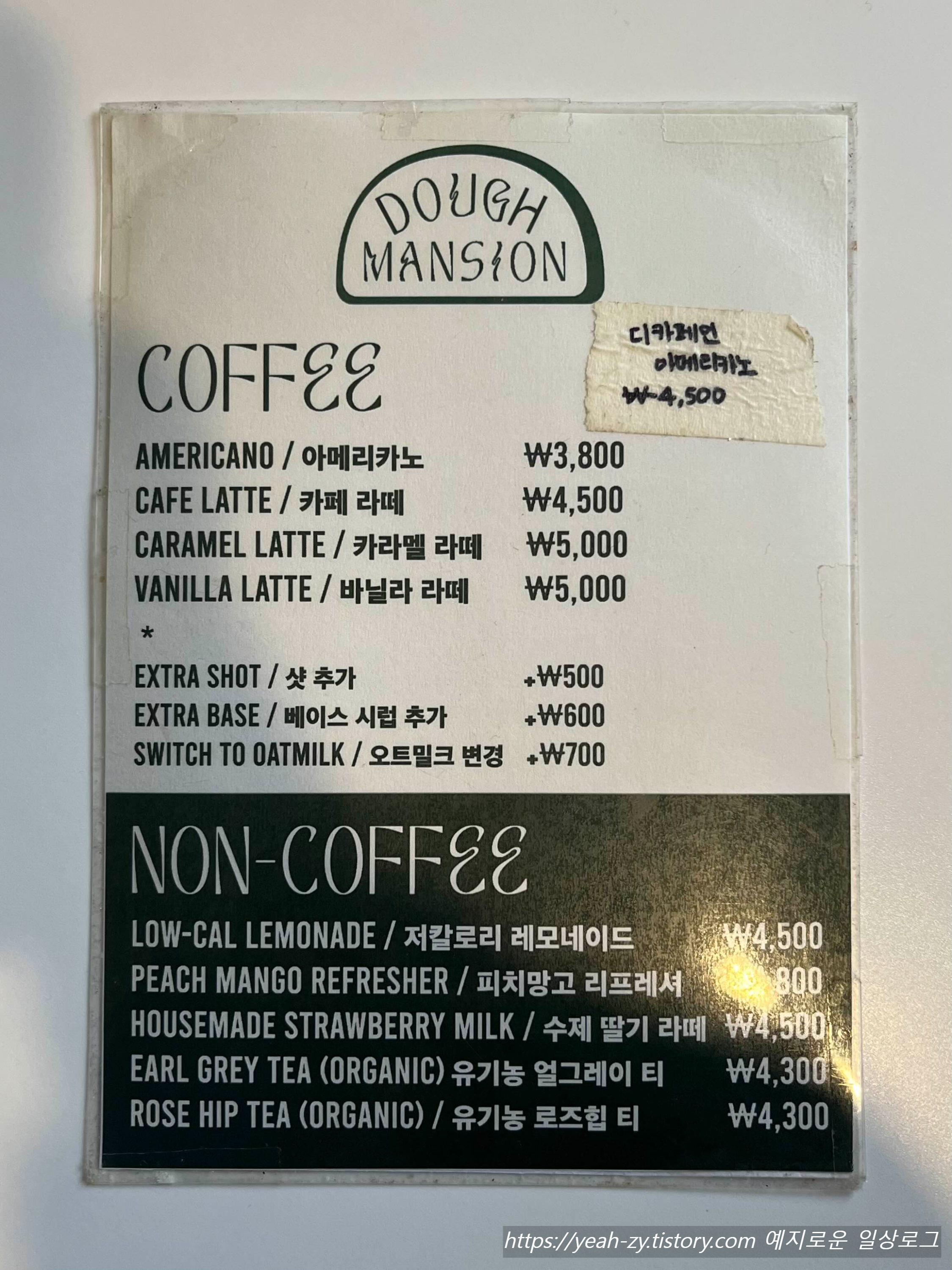 도우맨션 커피와 음료 메뉴는 기본에 충실한 심플한 구성