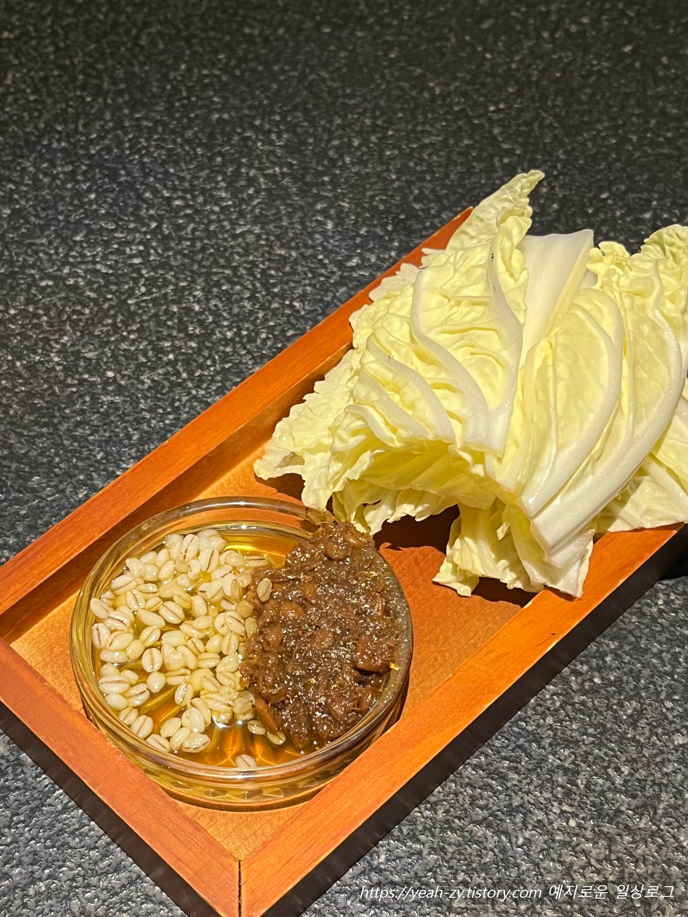 보리쌈장은 잘 섞어주신 후 싱싱한 알배추 위에 올려서 드시면 됩니다