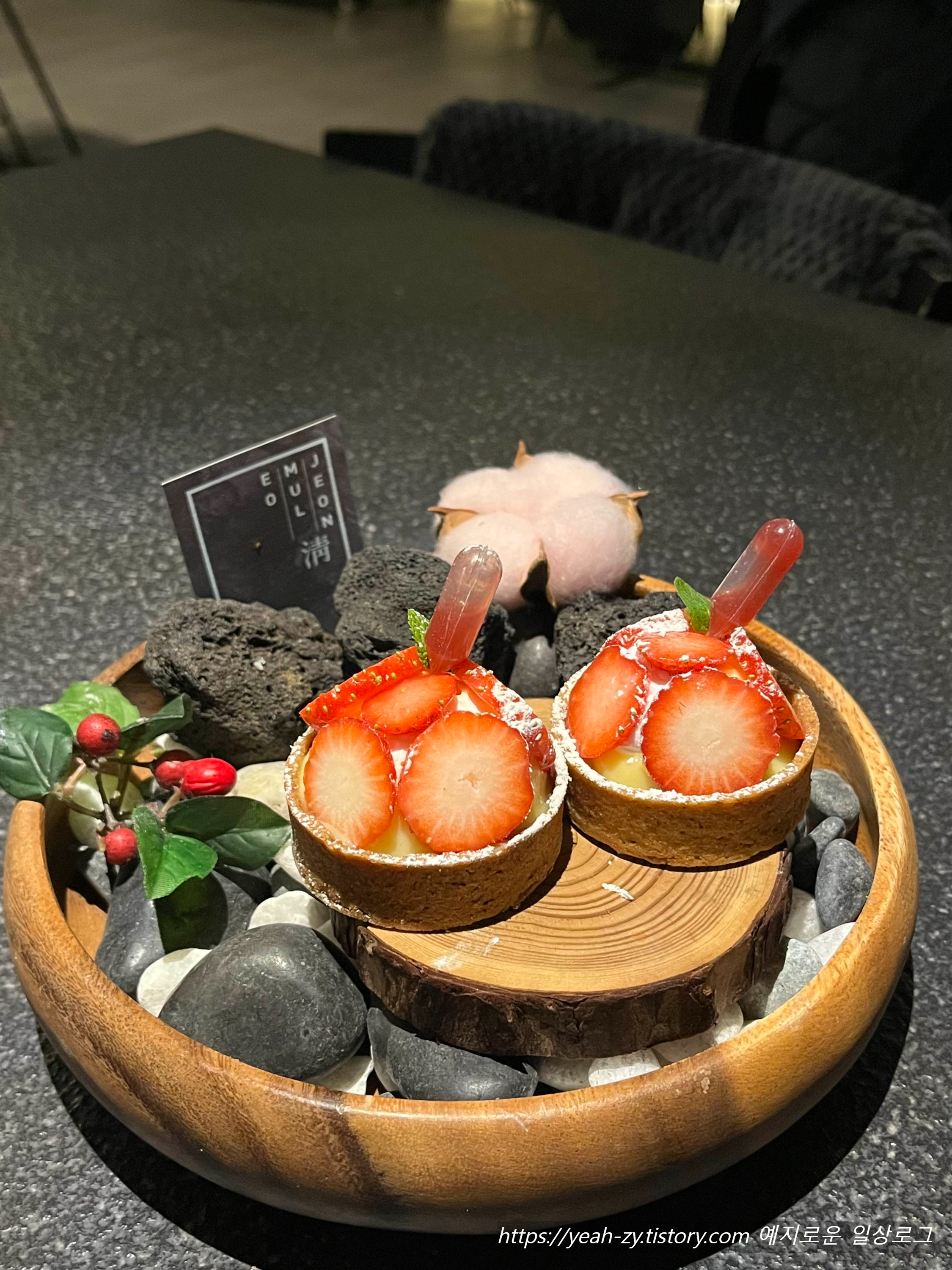 어물전 청 맡김 차림의 마무리 코스는 딸기 타르트