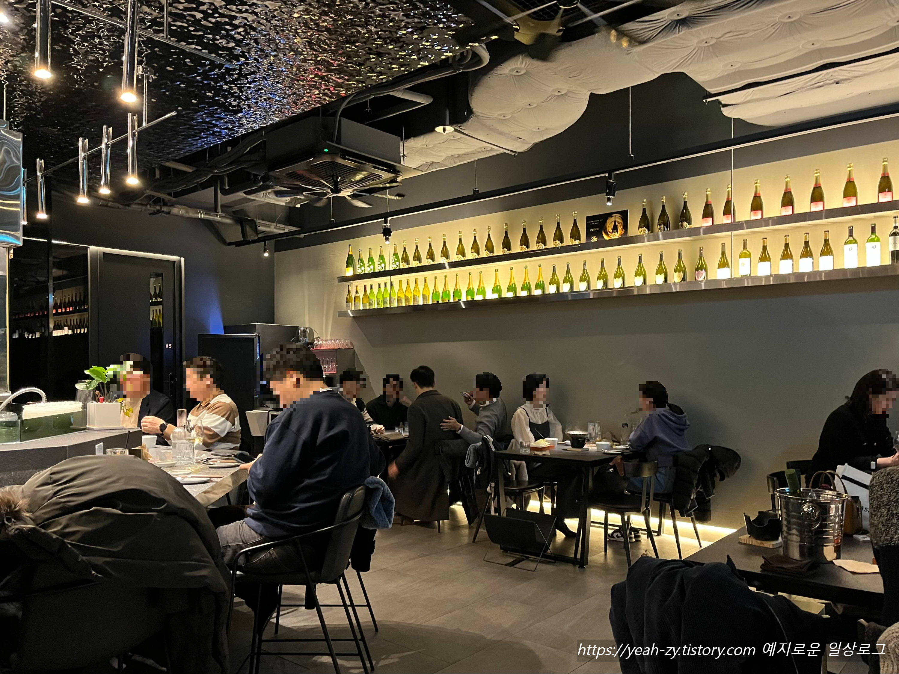 메인 홀에는 다이닝 바와 여러 테이블석이 배치되어 있고, 안쪽엔 룸 테이블도 따로 있습니다
