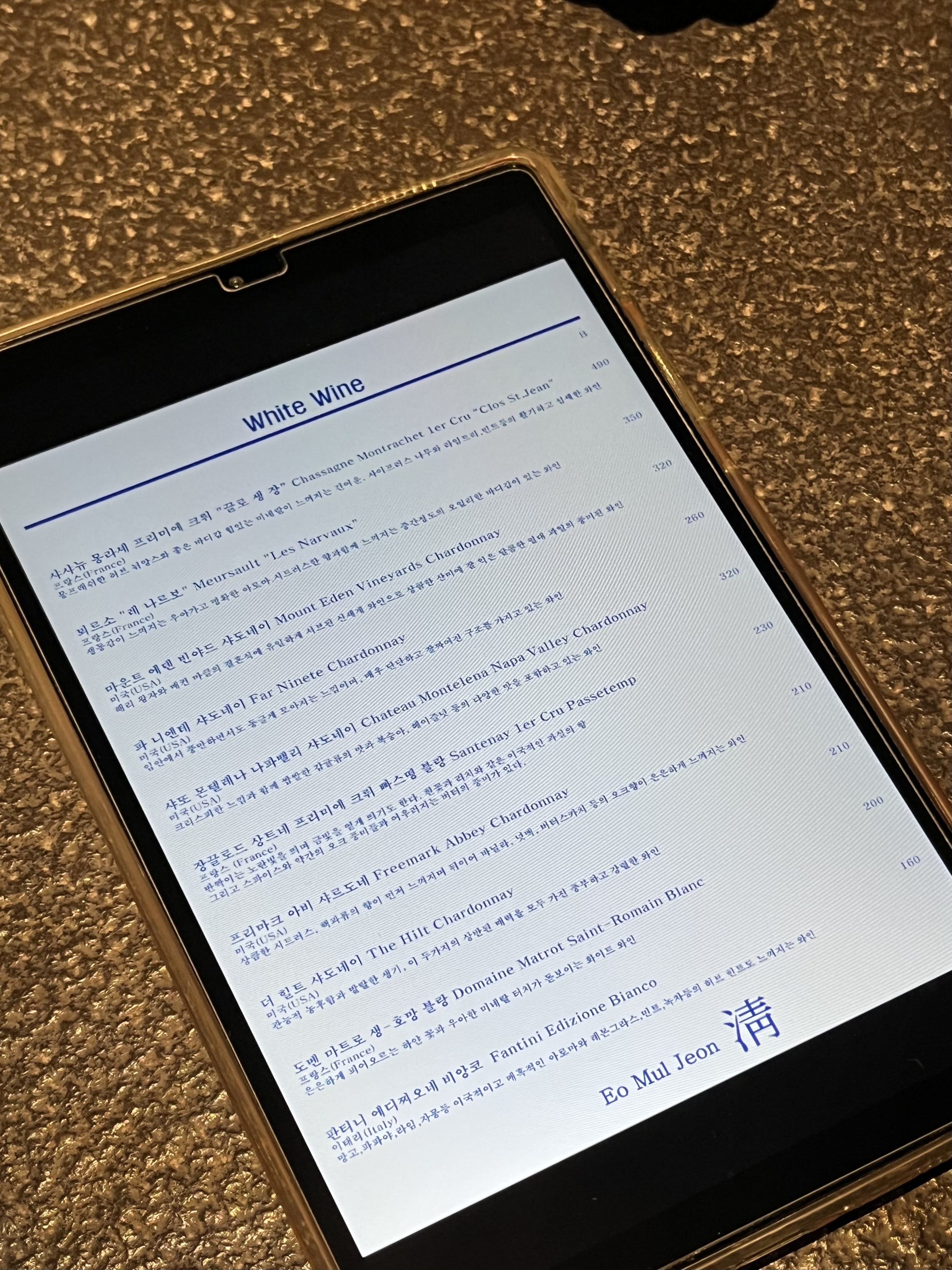 주문했던 화이트 와인과 완전히 다른 스타일이고, 식사보다 디저트와 잘 어울려서 오히려 좋았습니다