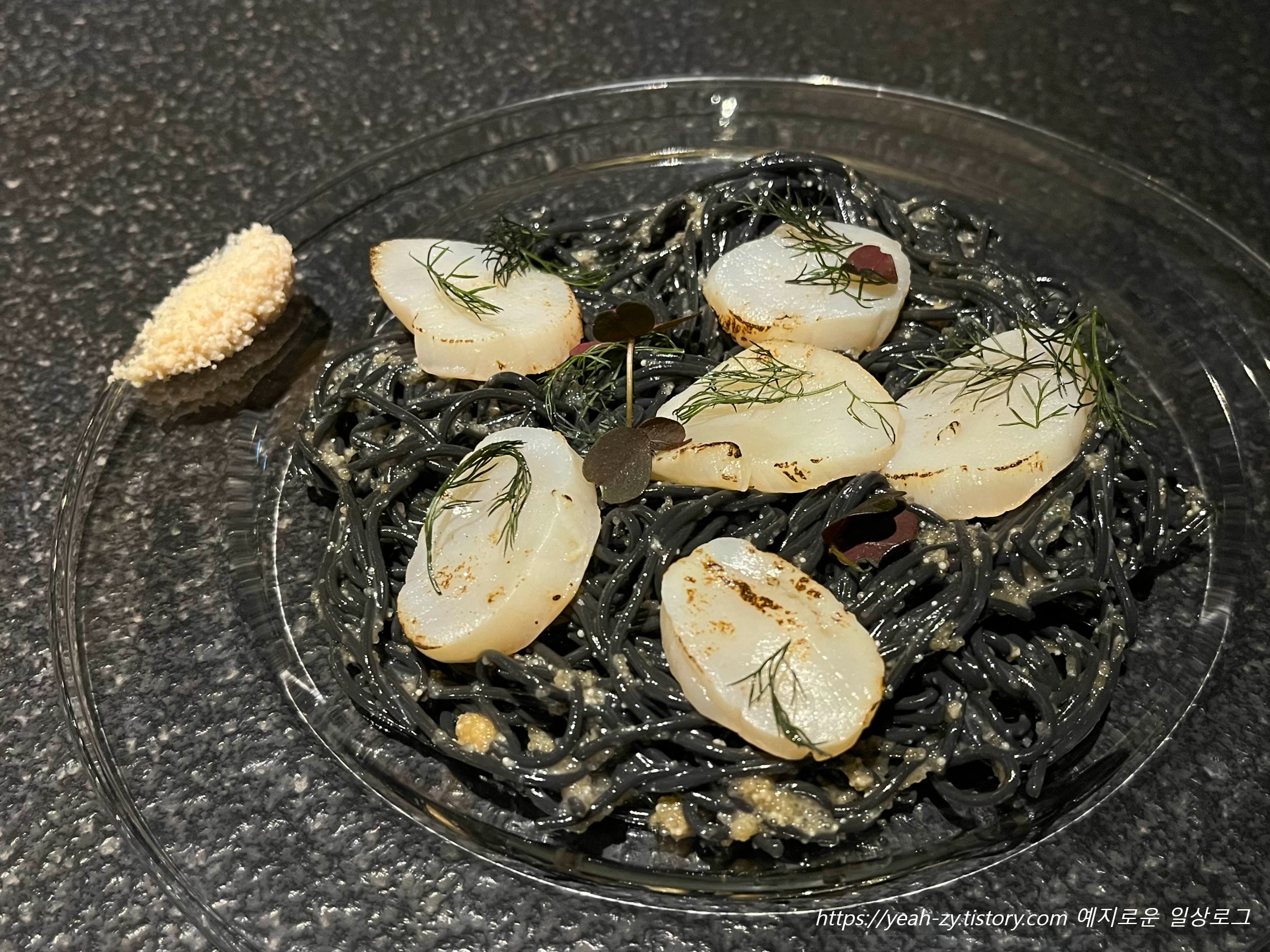 담백한 스타일 먹물 파스타와 버터에 구운 관자, 명란 스프레드까지🍝