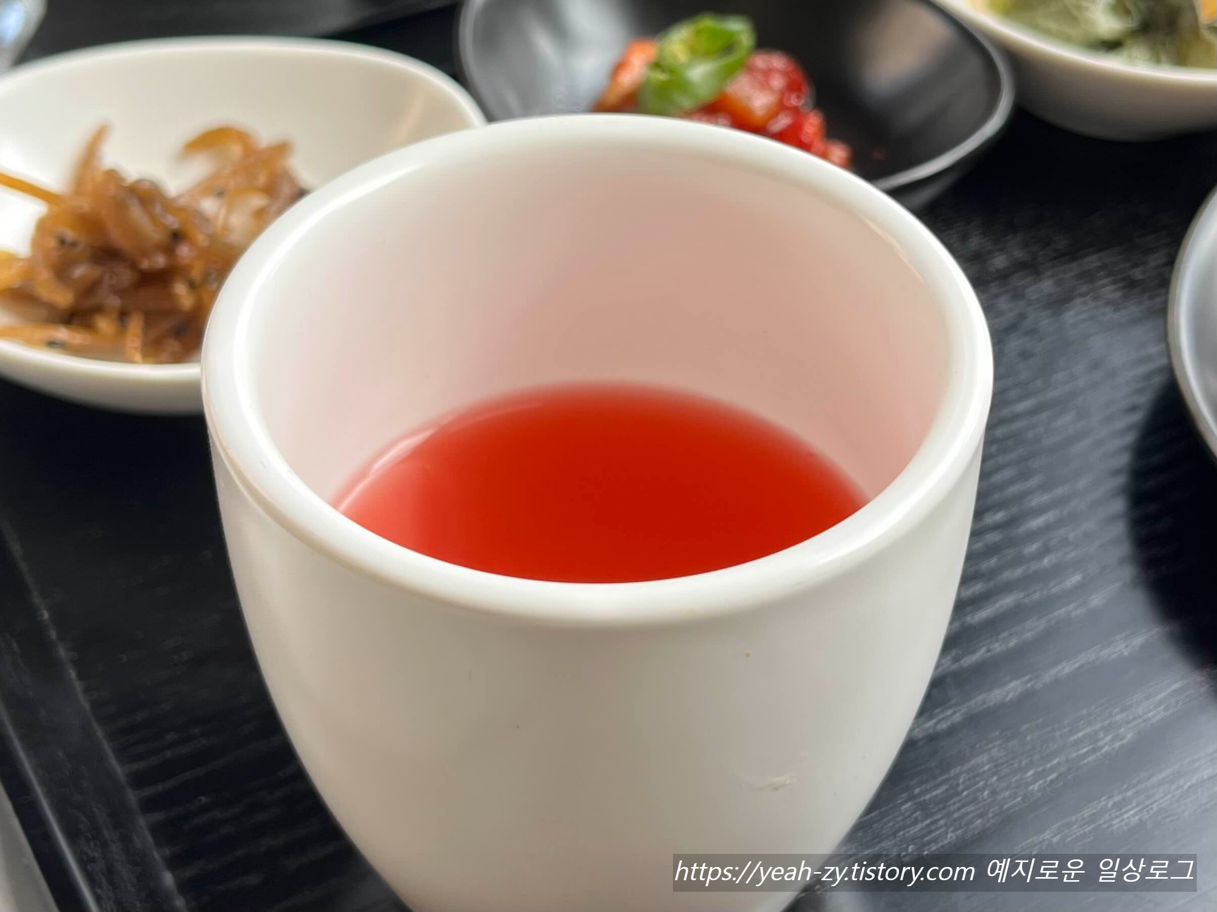 곁들임 음료로는 달달한 아이스 오미자 차를 같이 준비해 주셨어요.