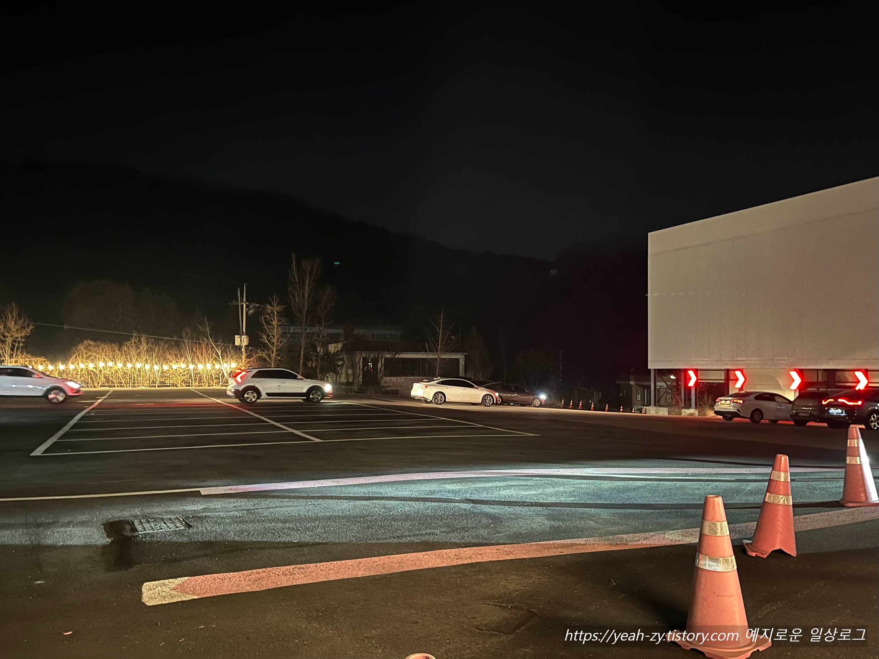 아직 전 회차 영화가 상영 중이기 때문에 갓길에 라이트를 소등하고 주차 후 대기합니다.