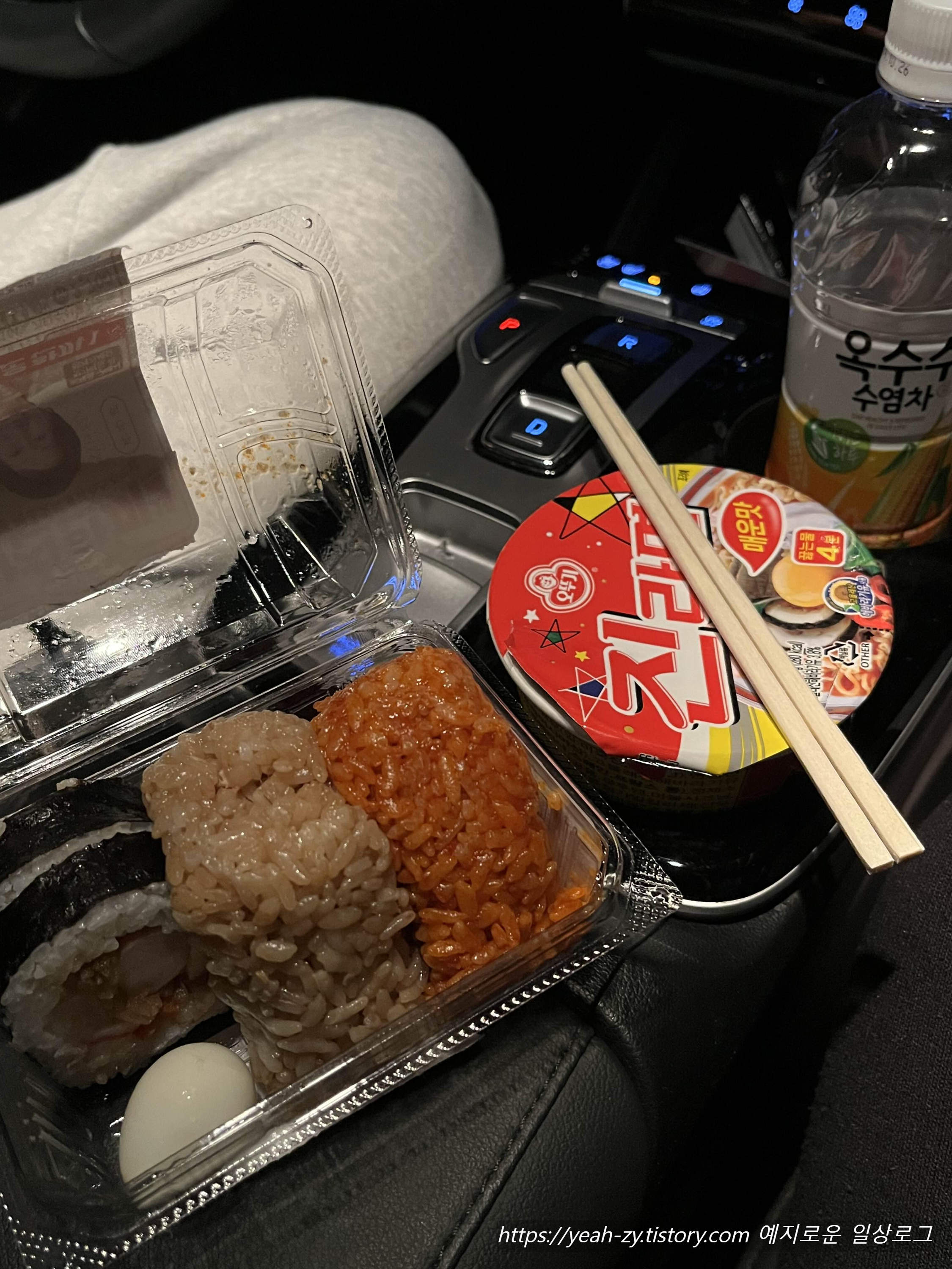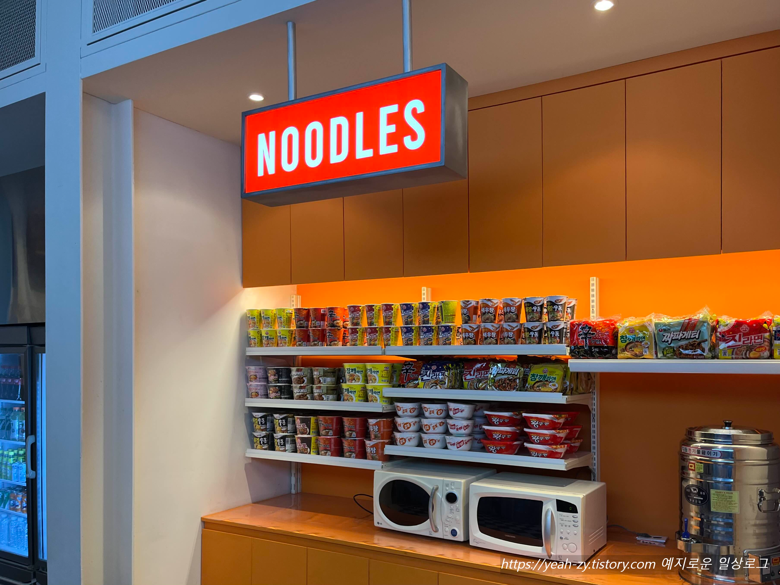 외부에서 간식들을 이미 사 온 상태라 스낵바에서는 컵라면 두 종류만 이용했어요.🍜