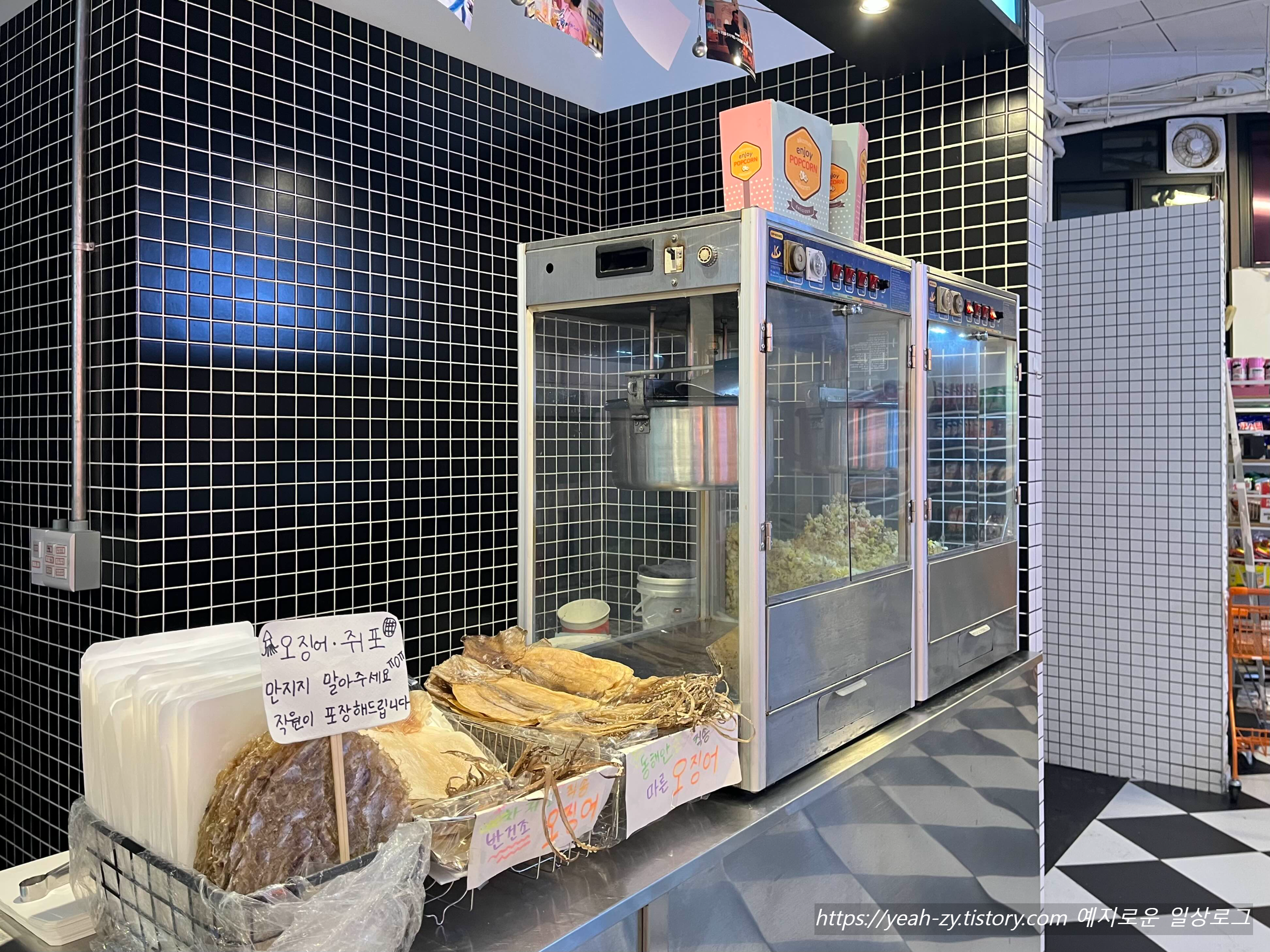 나혼산에서 봤던 쥐포와 팝콘, 제주 차귀도 반건조 오징어, 동해안 마른오징어가 있어요.🦑🍿