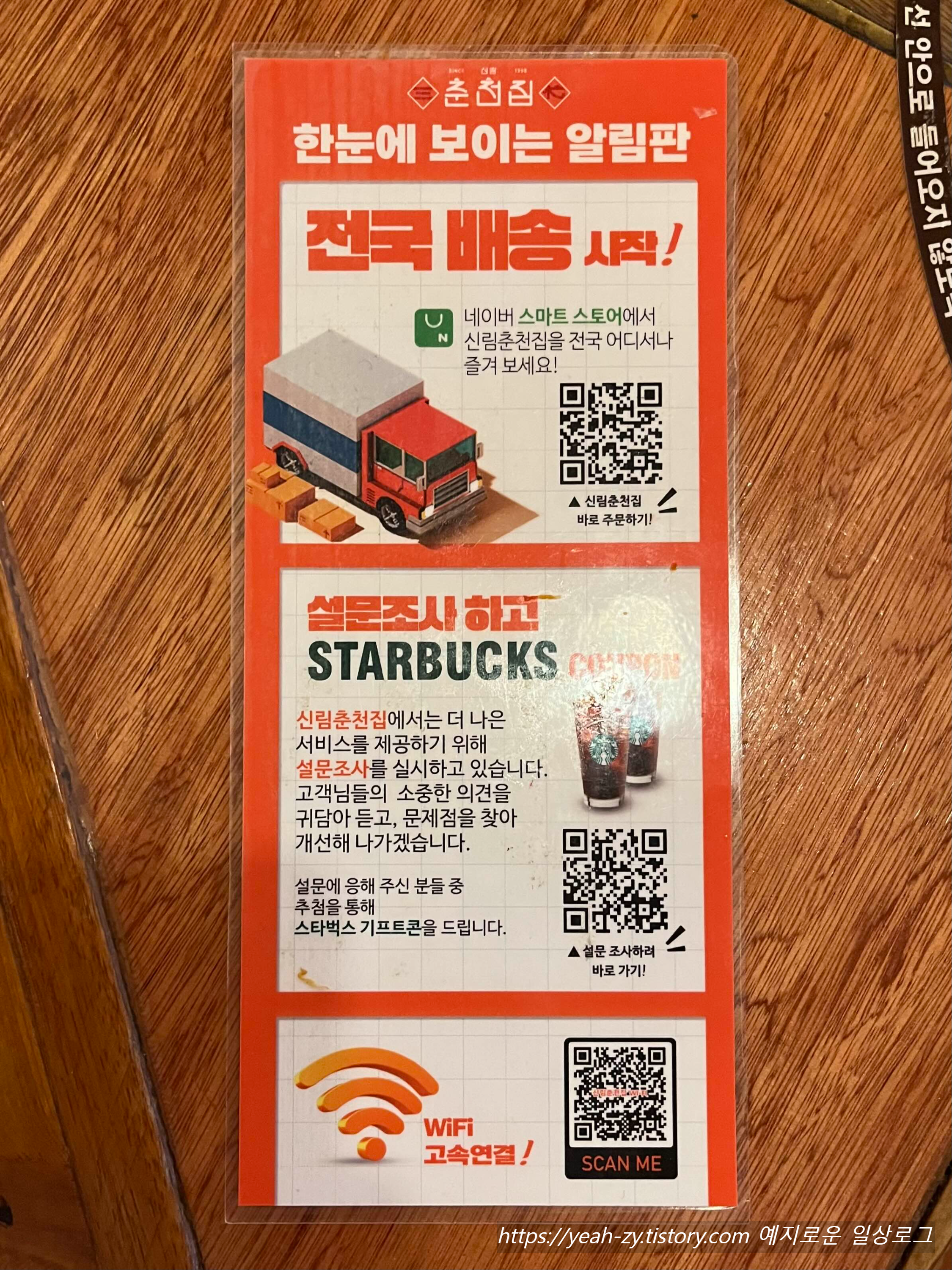 상호에 신림이 들어가고 춘천도 들어가는데, 위치는 서울 구디예요. 헷갈림 주의🤣