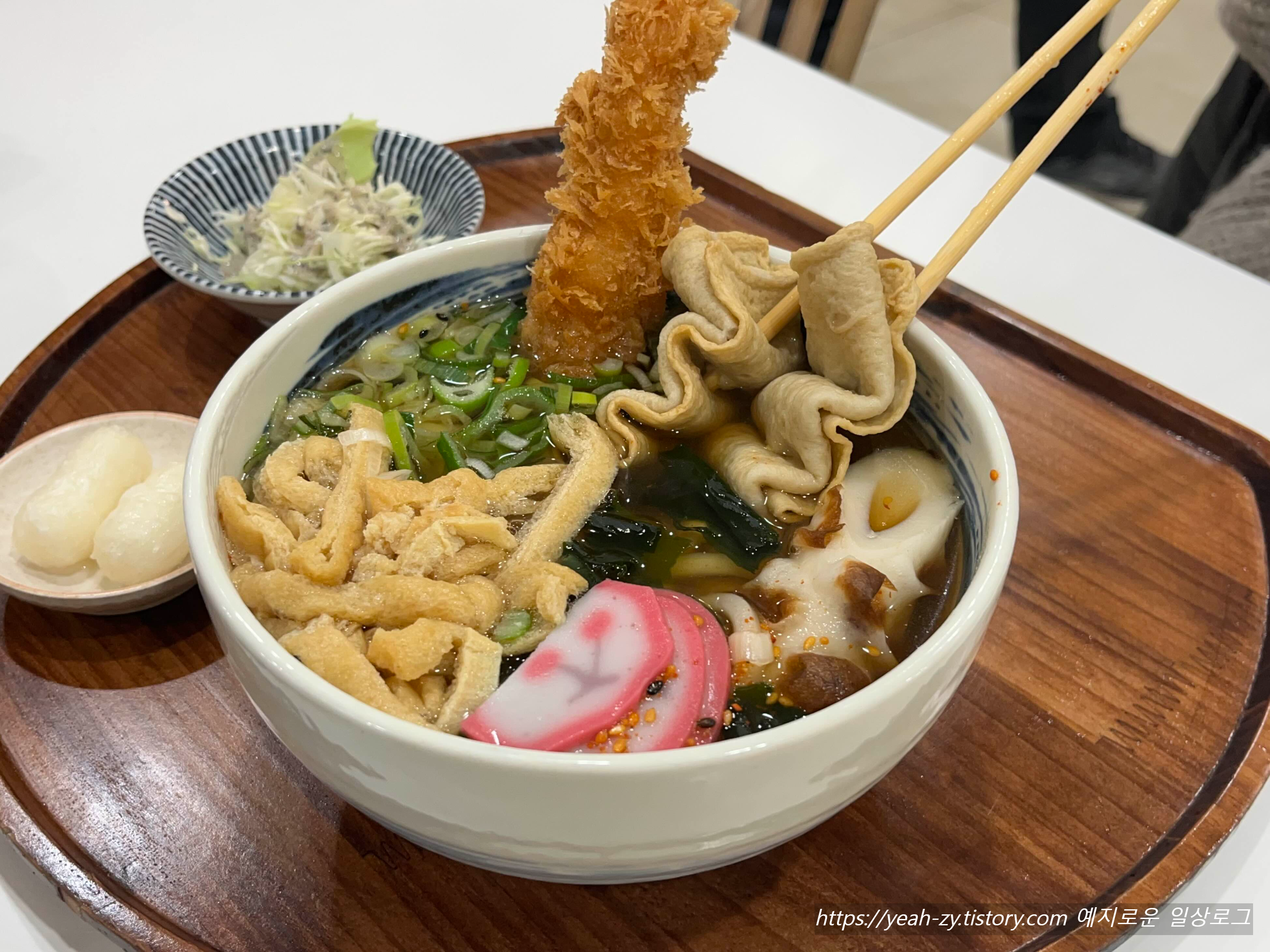 에비텐어묵우동은 국물요리임에도 마제소바처럼 면이 탱글탱글해서 신기했어요.