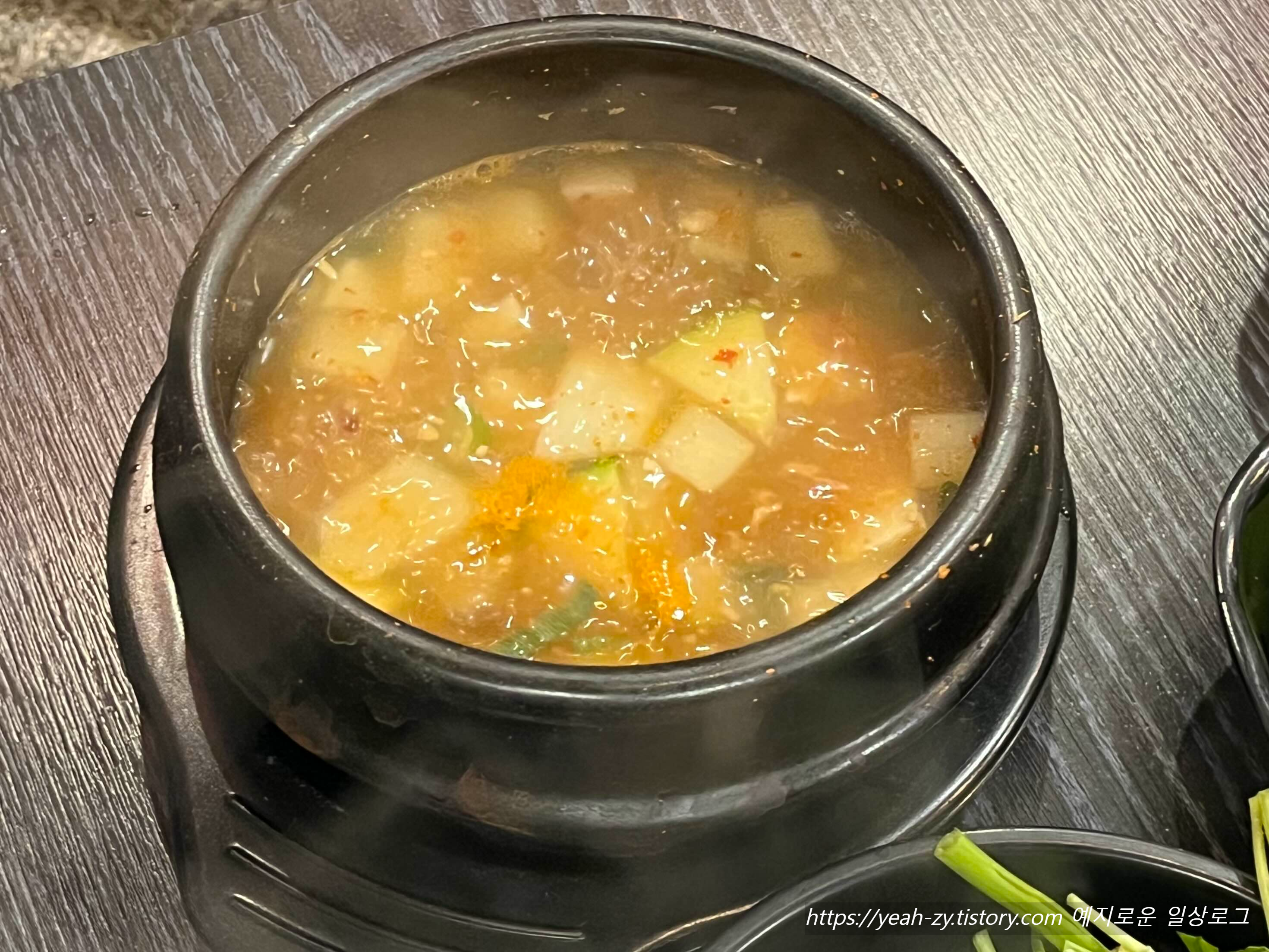 된장찌개는 기본 상차림에 포함되어 있는데, 생각지 못했던 기본찬이라 서비스받은 기분😃
