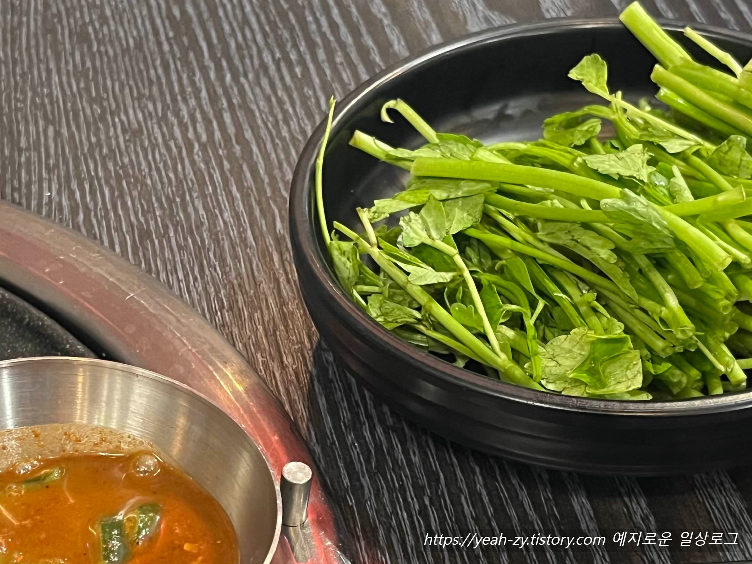 불판에 올려 고기와 함께 싸서 드시면 되고, 추가로 셀프코너에서 리필하실 수 있어요.