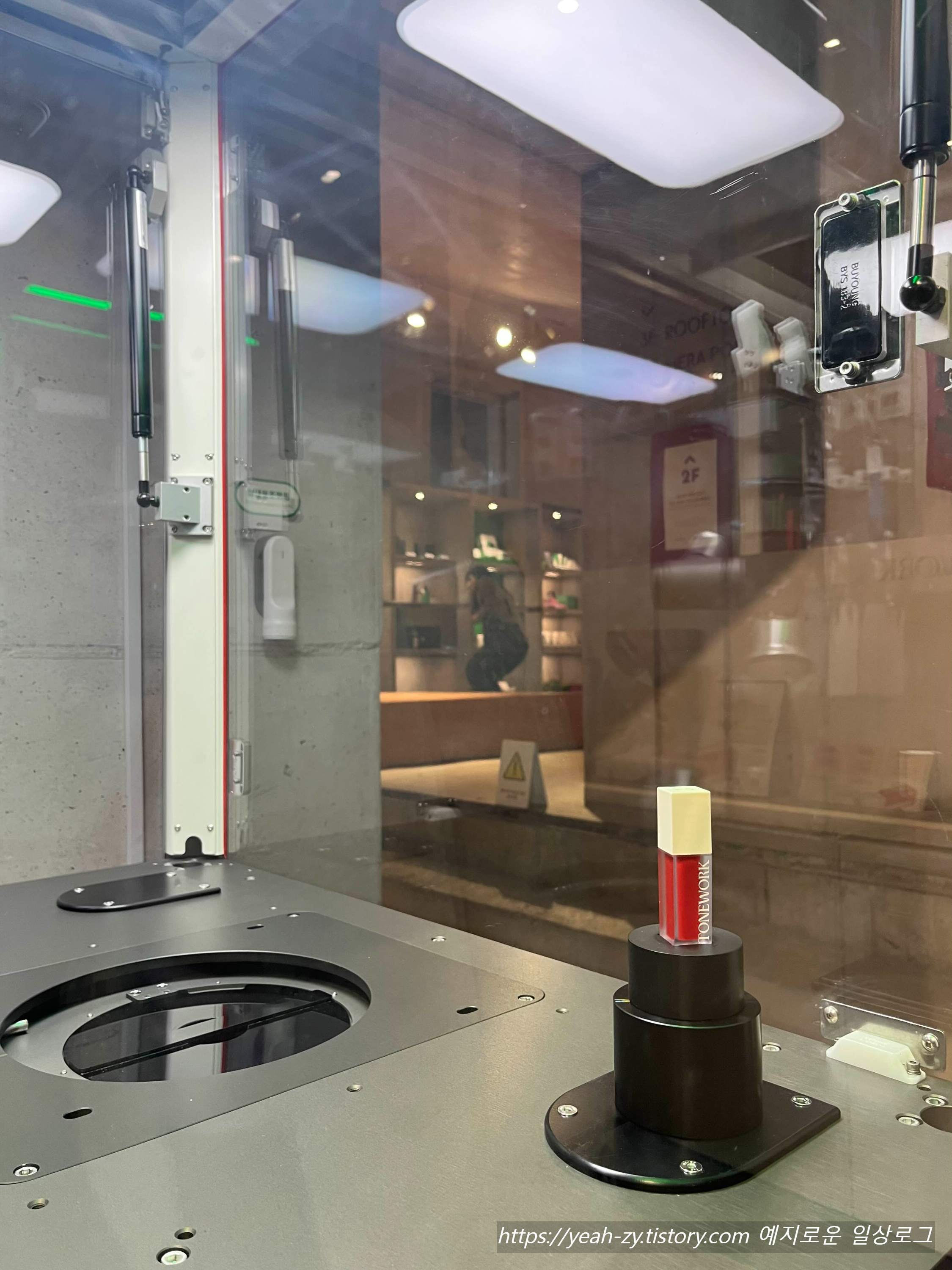 다음은 틴트를 즉석에서 만들어주는 신기한 기계를 구경했어요.