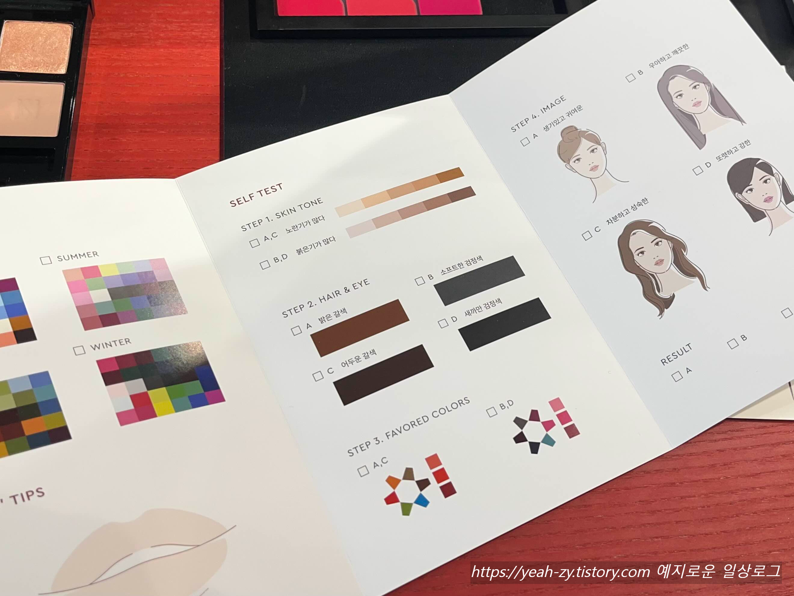 평소 옷을 입을 때나 화장을 할 때 선호하는 컬러, 사용하는 피부 톤, 이미지 등 자가진단을 해주시면 됩니다.