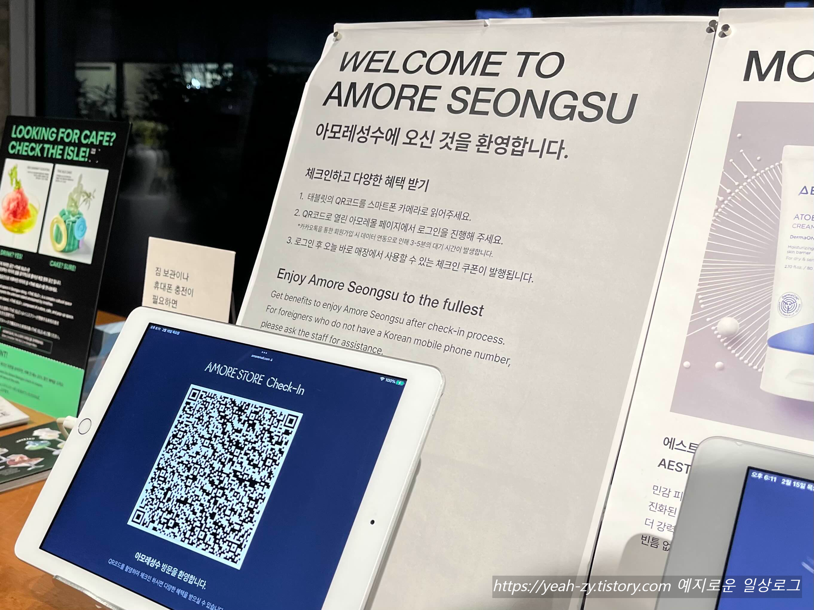 팝업 입장을 위해서 필수로 아모레퍼시픽 가입 QR체크인을 진행해 주셔야 해요.