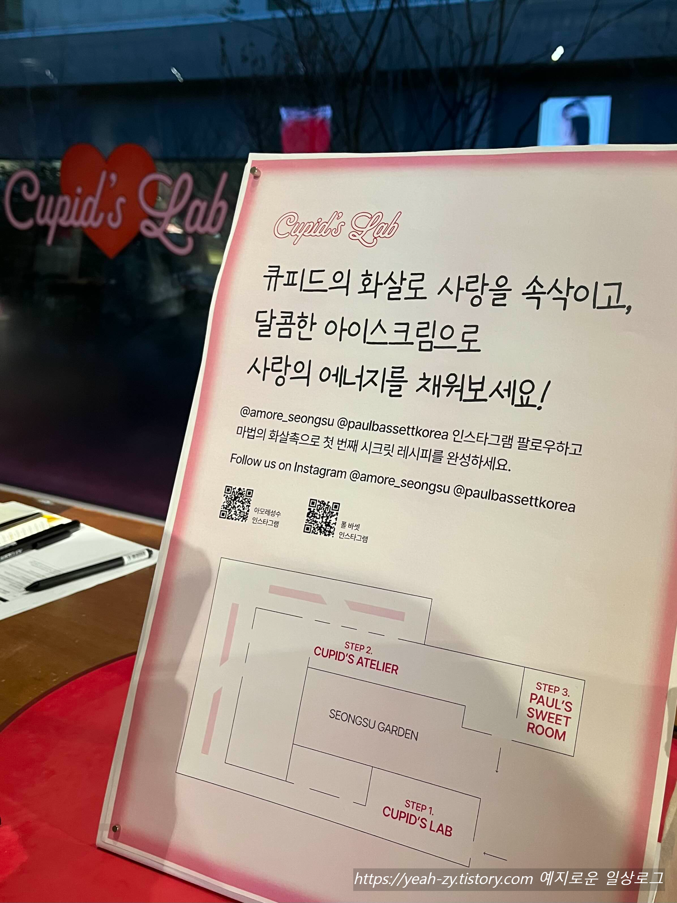 지금 방문하시면 아모레 성수 2월 팝업인 폴바셋 Cupid's Lap이 동시 진행 중이라 같이 보실 수 있어요.