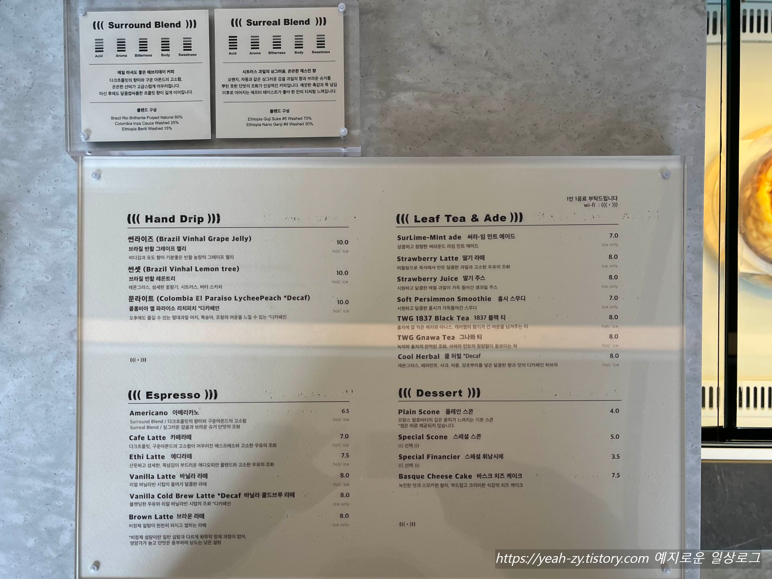 커피 가격대가 약간 높은 편이긴 한데 맛이 전체적으로 괜찮은 곳이더라고요.