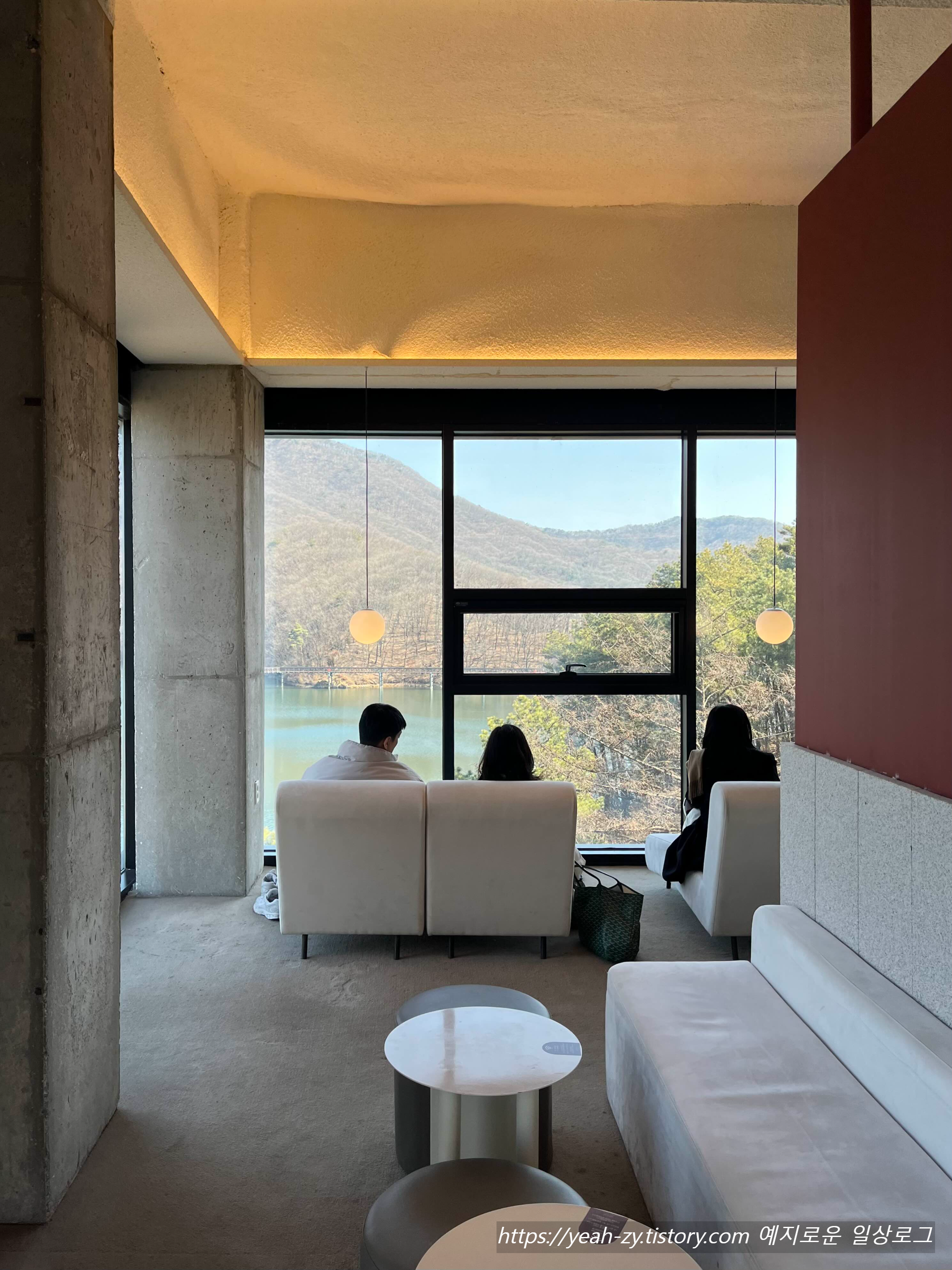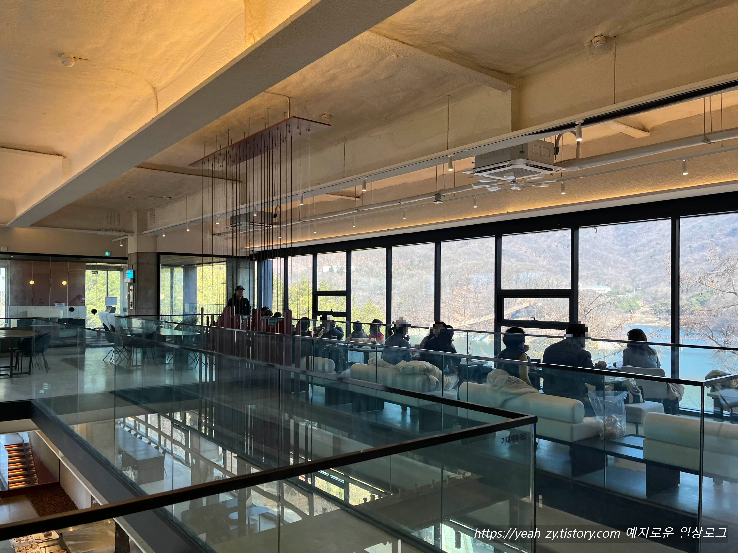 2층으로 올라가 보니 통창으로 내려다 보이는 마장호수 뷰가 더 장관입니다.