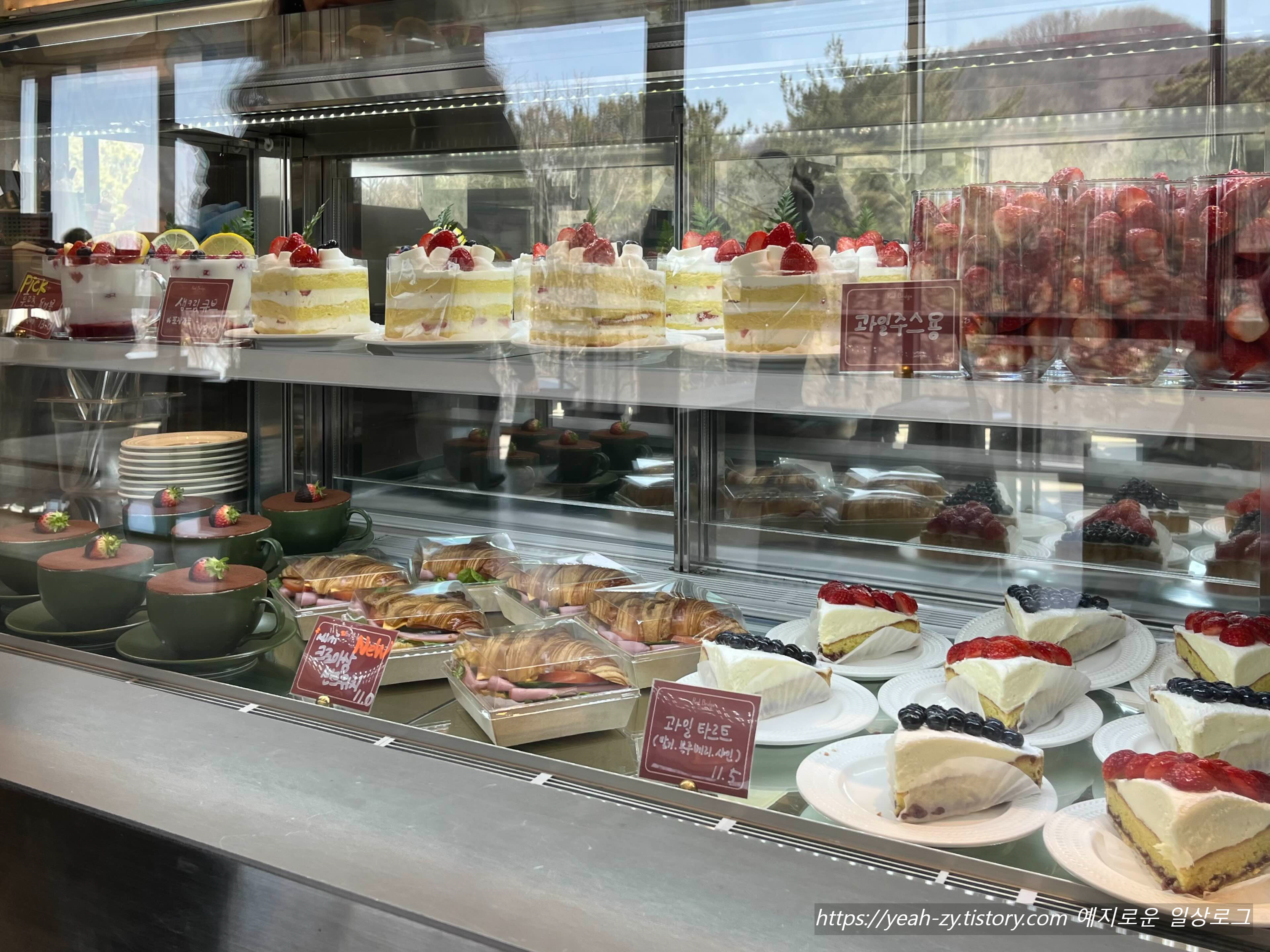 베이커리, 디저트 종류는 계속 바뀌고 주방에서 만들어지는 즉시 바로바로 디피되는 것 같아요.