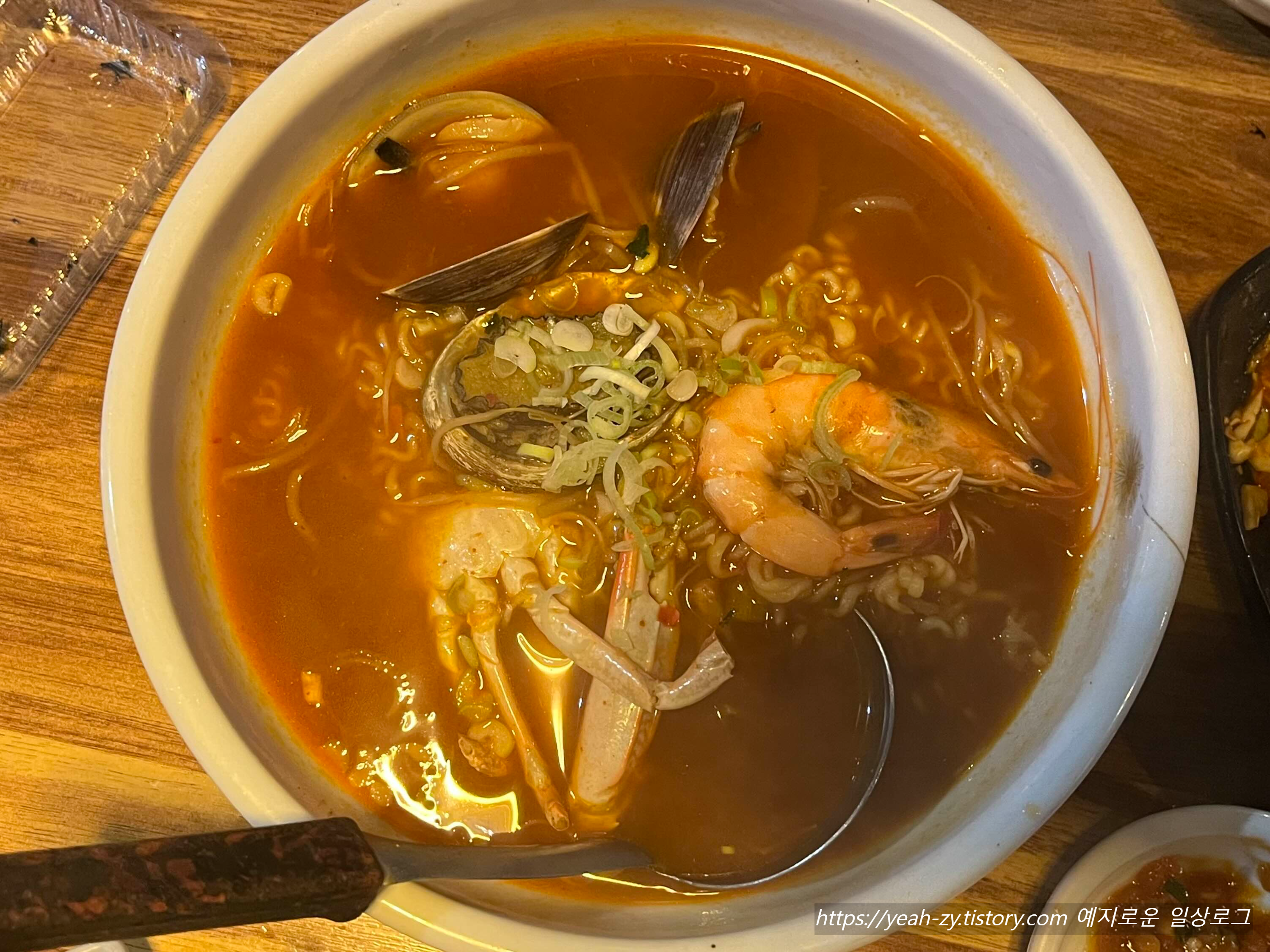 통통한 전복, 꽃게, 새우, 조개까지 듬뿍 들어가서 해장이 절로 되는 시원한 국물이에요.