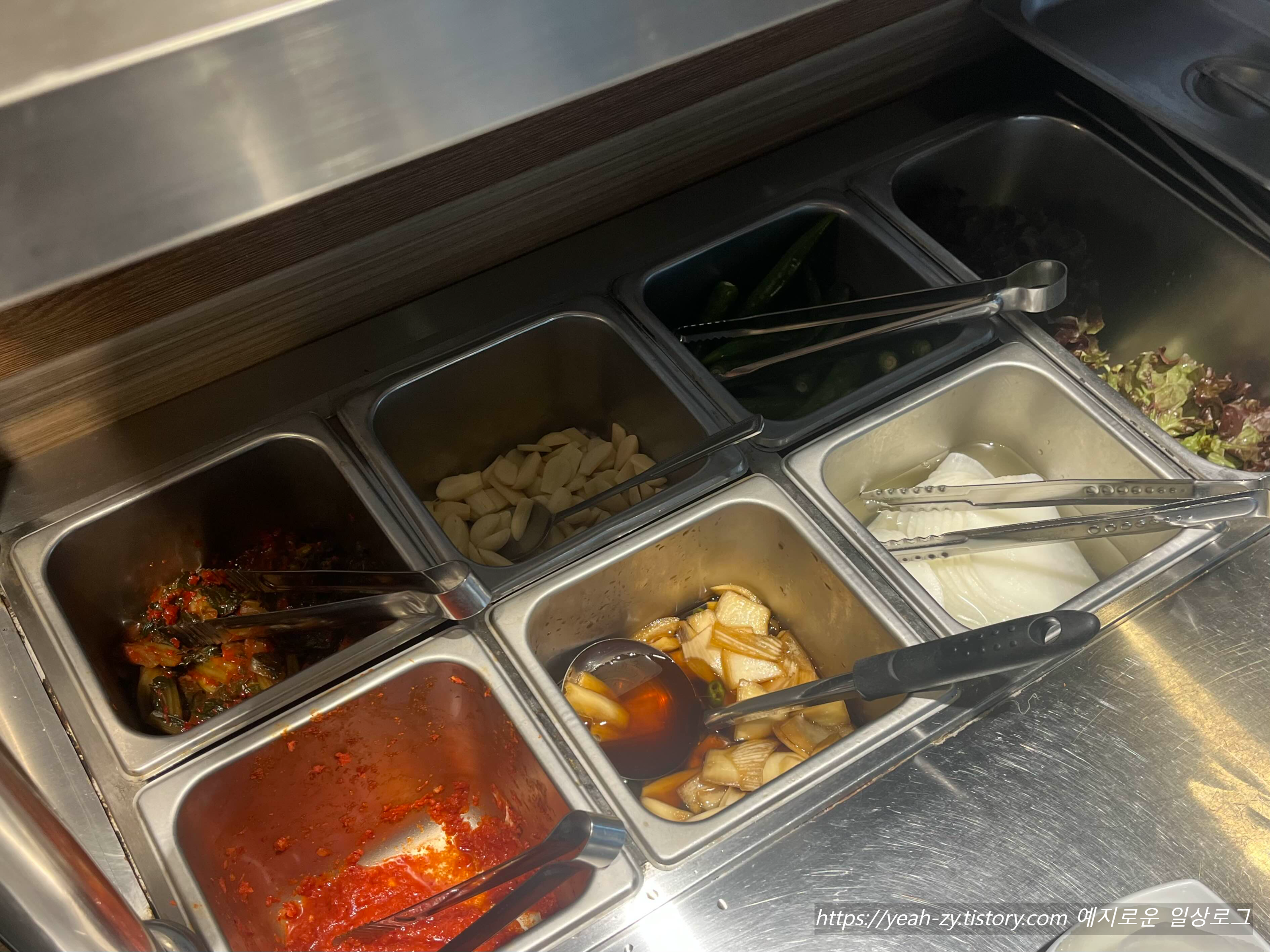 한쪽에 있는 셀프코너에서 추가 반찬 리필이 가능합니다.