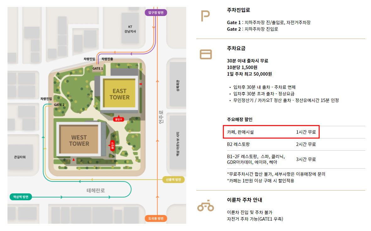 - 카페 1만 원 이상 구매 시 주차 할인적용