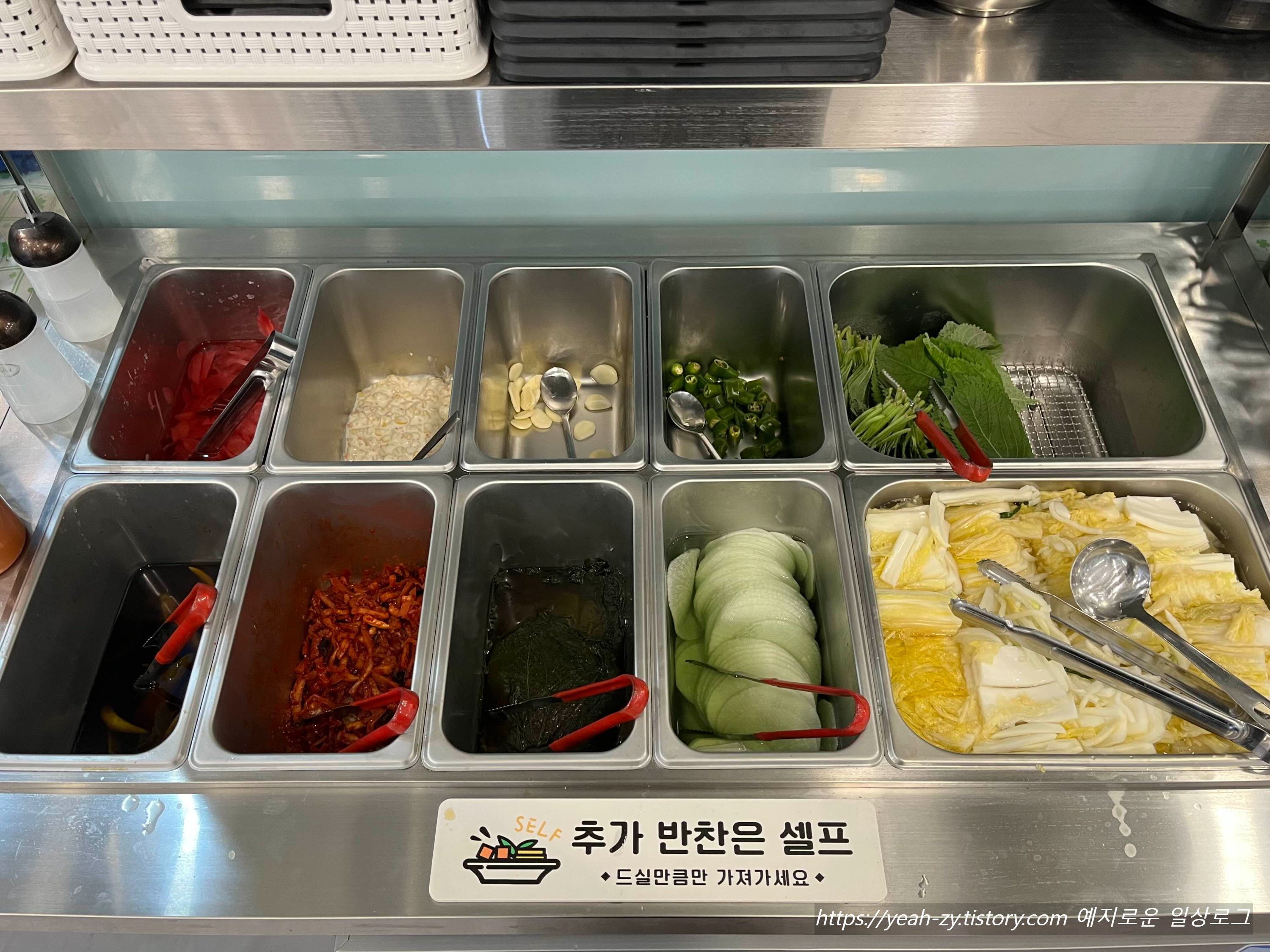 추가 밑반찬은 주방 앞 셀프코너를 이용해 주시면 됩니다.✔️