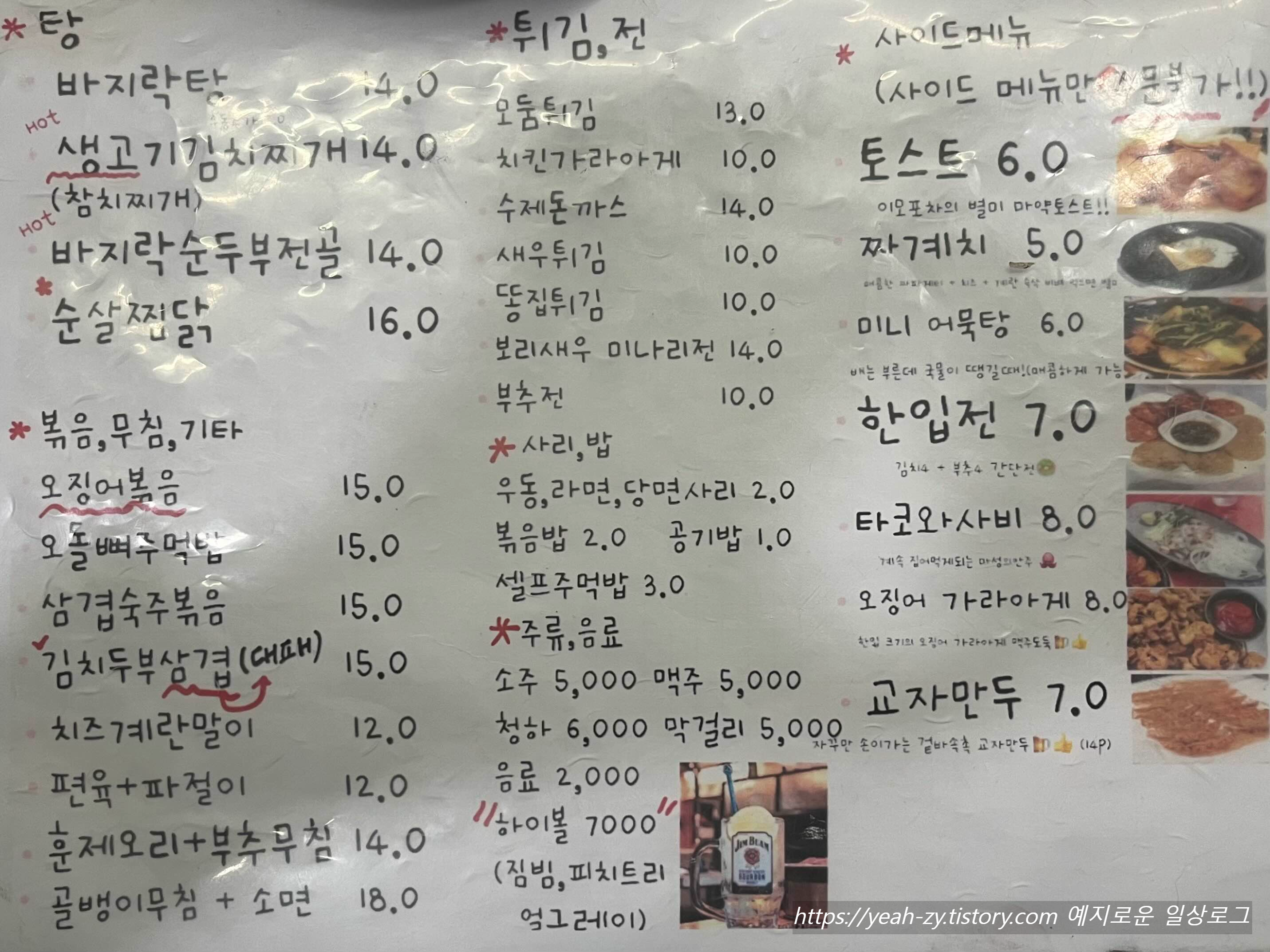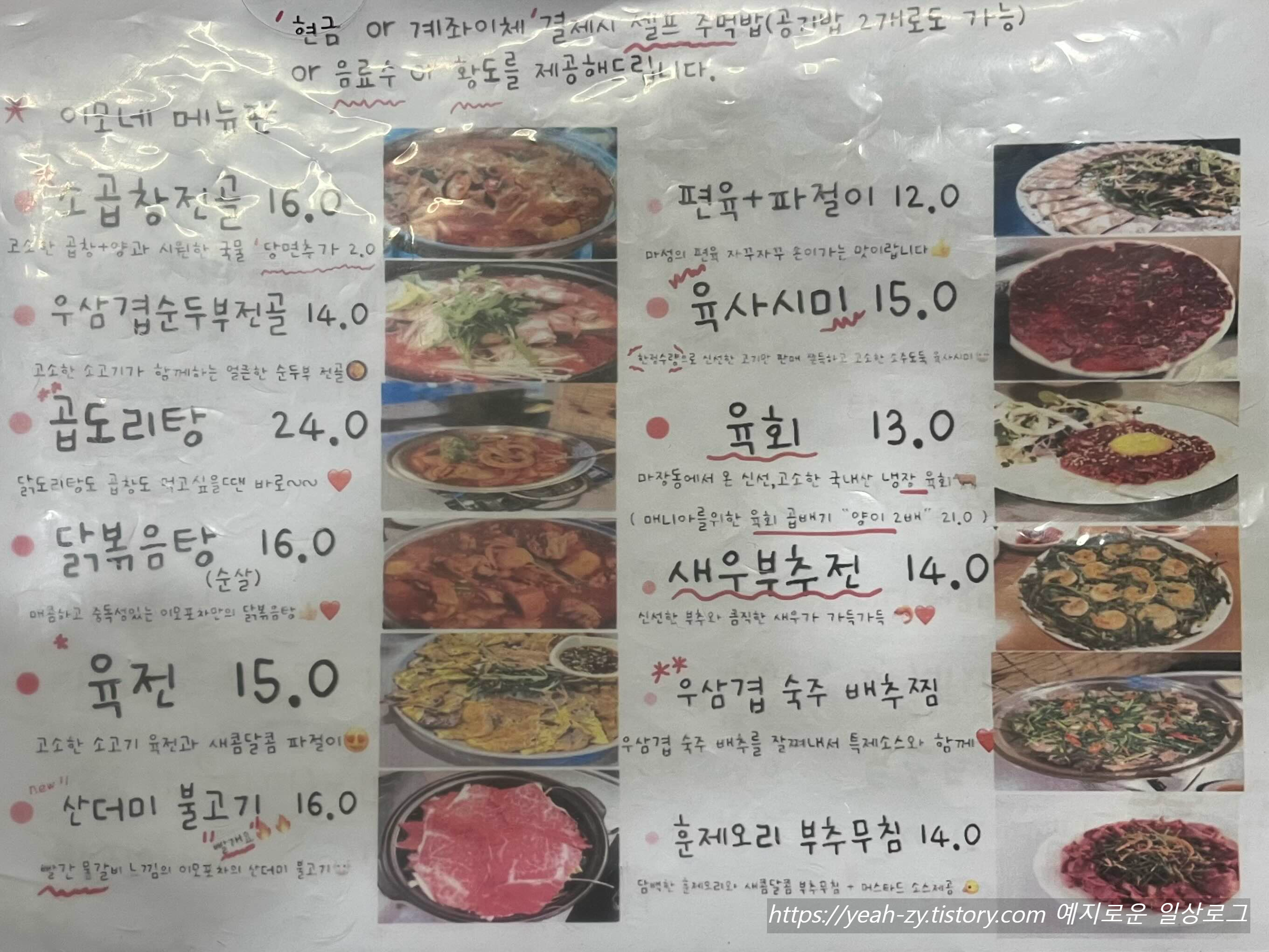 - 이모포차 메뉴판