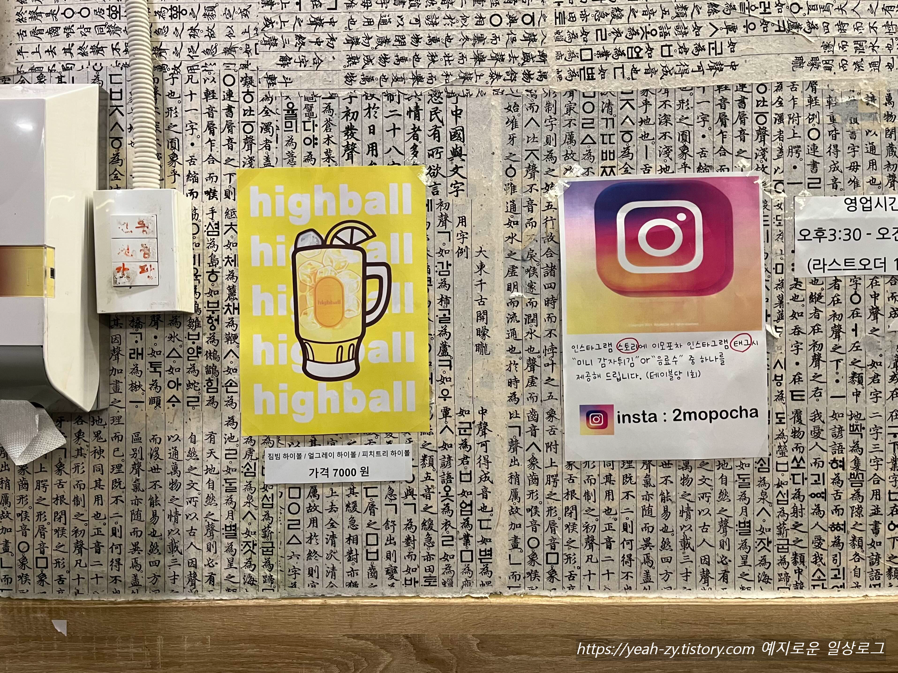 이모포차 메뉴판