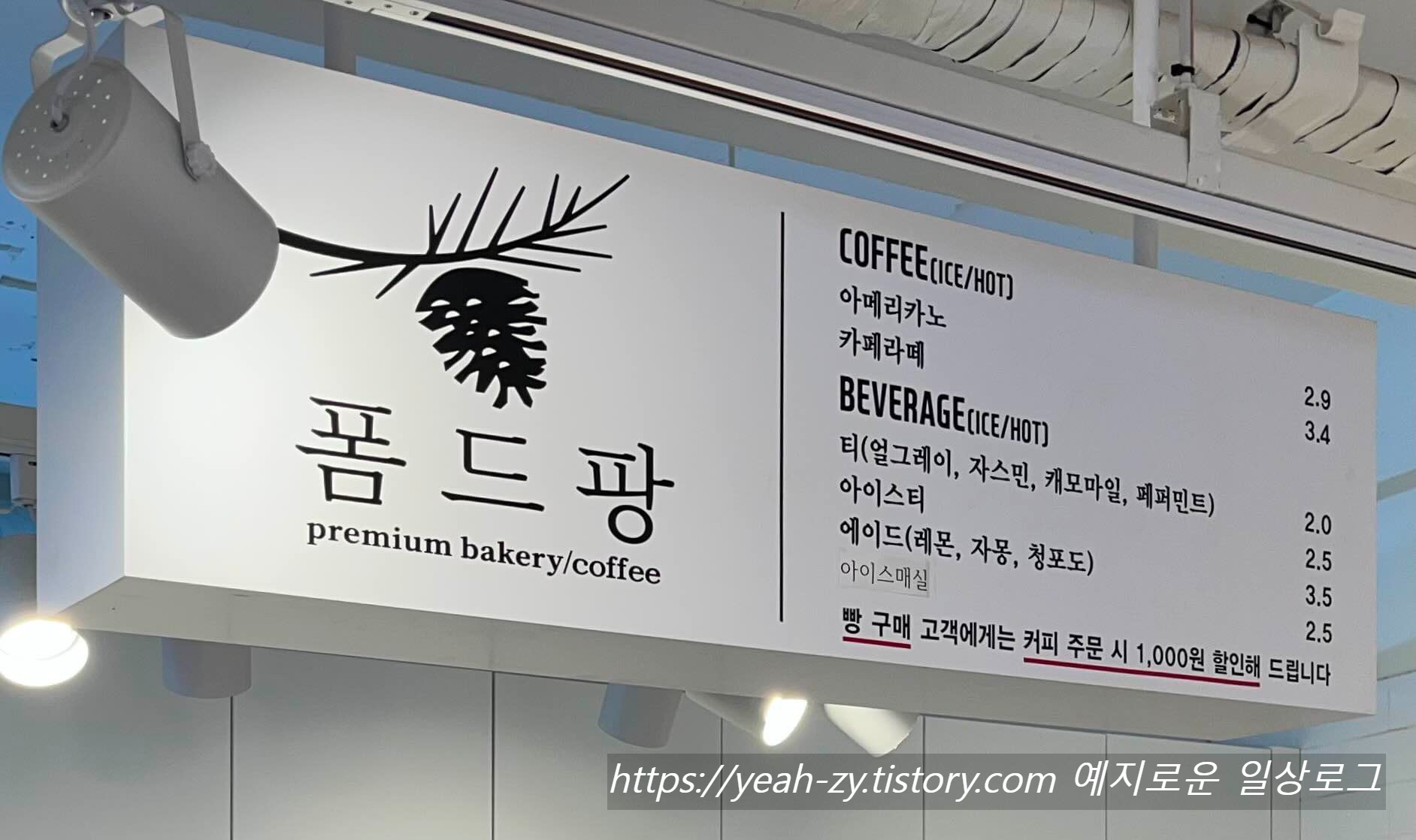 빵을 구매하시면 커피 주문 시 1,000원 할인이 적용됩니다.