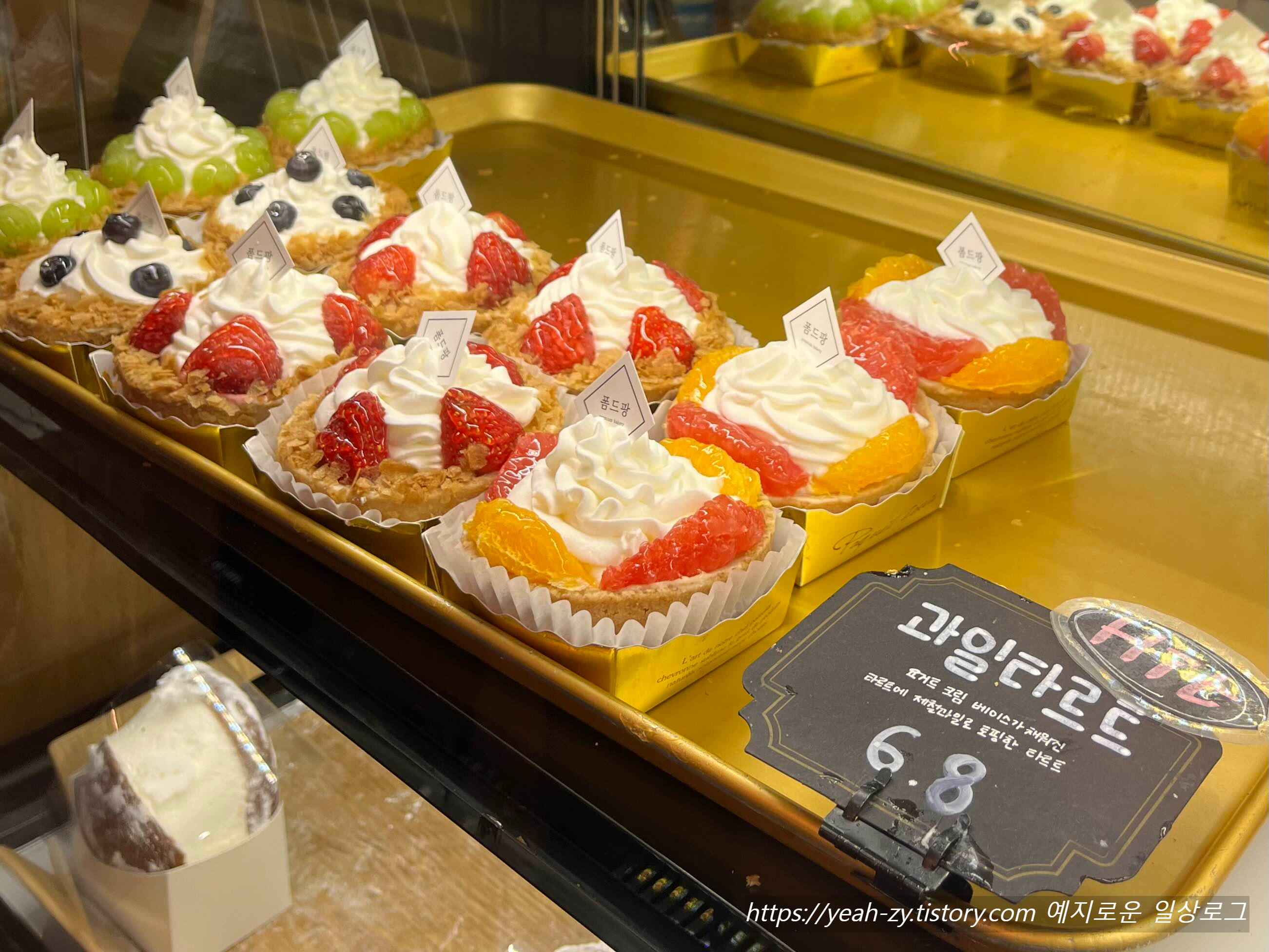 생크림 팡도르와 과일 타르트는 만화에서나 나올 법한 비주얼이에요.