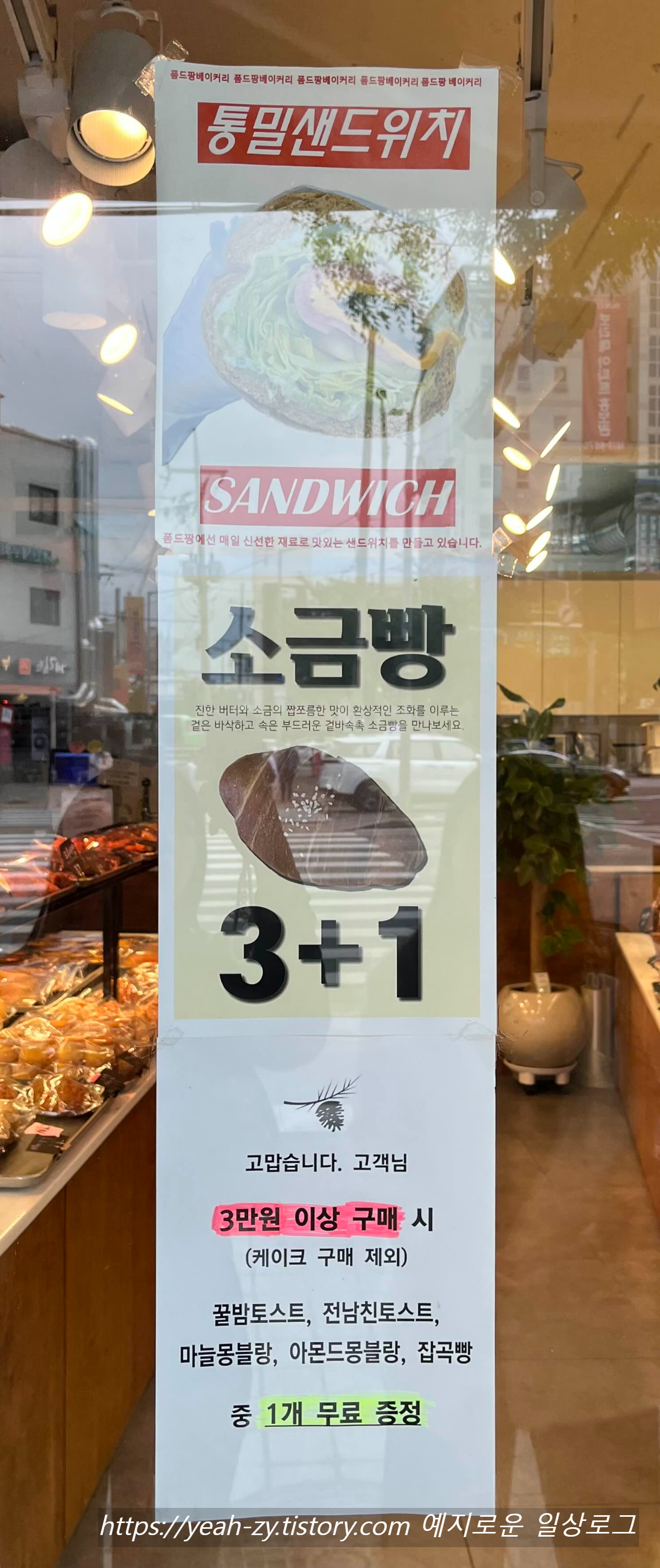 소금빵 3+1에 이어 3만 원 이상 구매 시 추가 빵 증정 이벤트까지👏