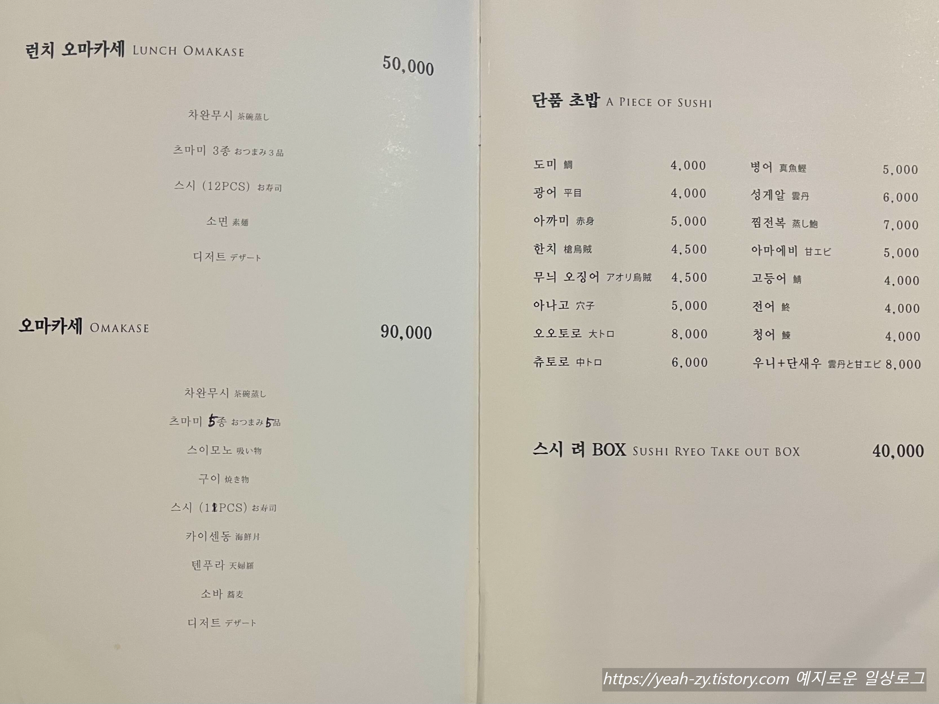 적당한 가격대, 퀄리티를 가진 미들급 스시 오마카세 스시려를 다녀왔습니다.