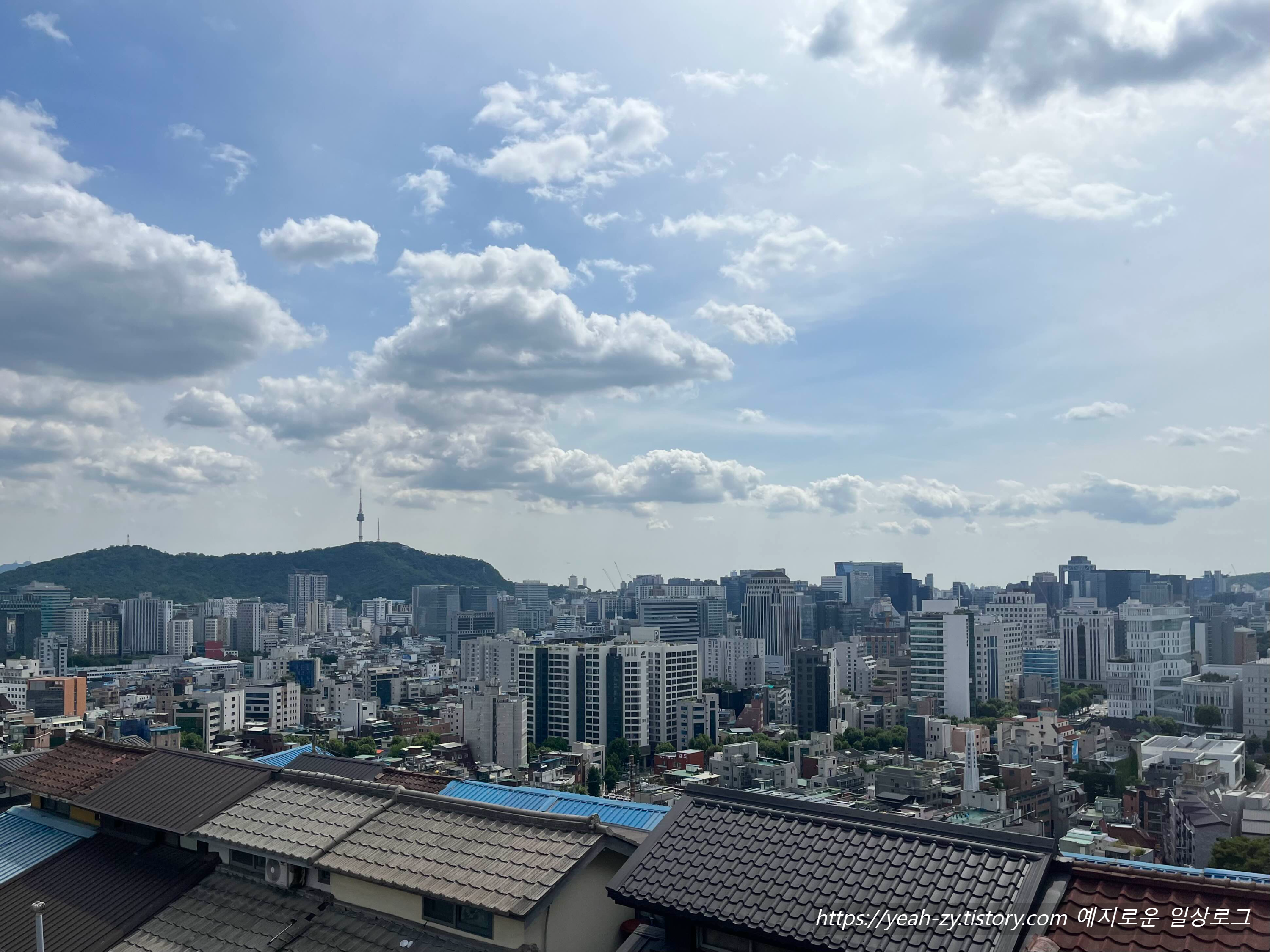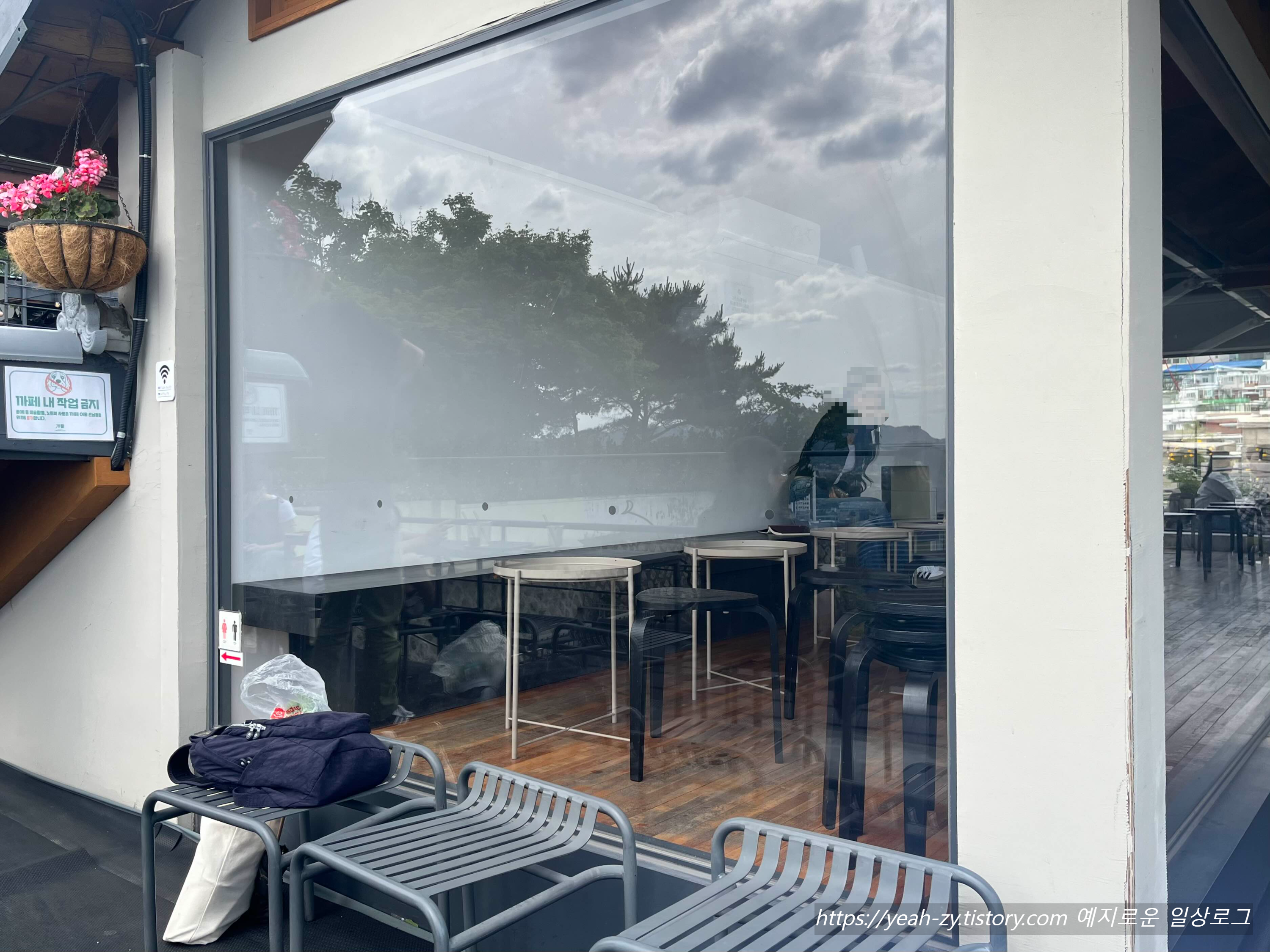 멀리 남산타워까지 보이는 미세먼지 없는 하늘이었어요. 이런 날은 당연히 테라스에 앉아줘야지.😉