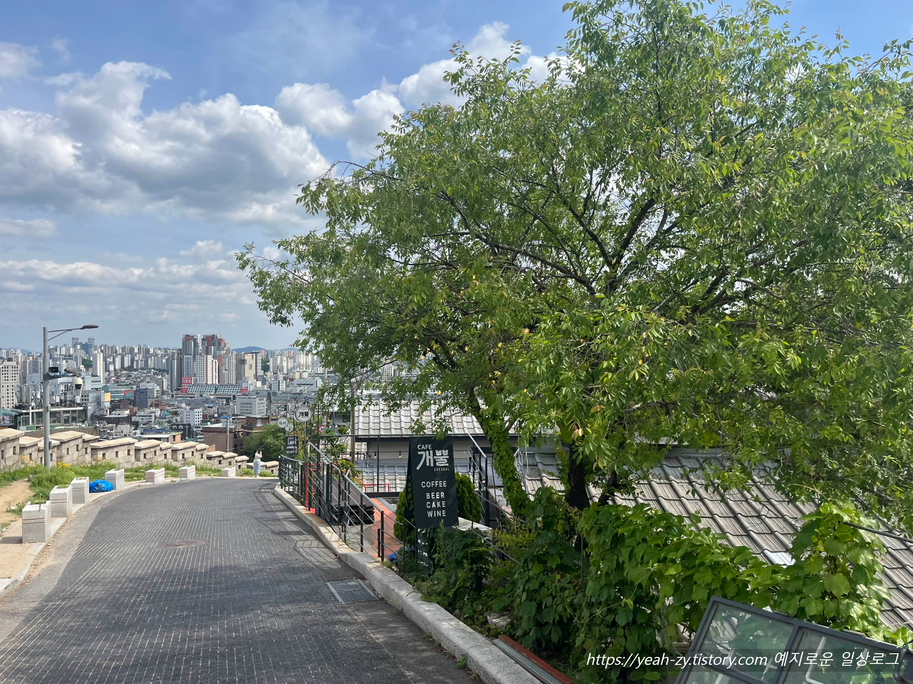 낙산공원 꼭대기 서울이 한눈에 들어오는 뷰 좋은 카페, 산책 및 데이트 코스로 추천합니다.