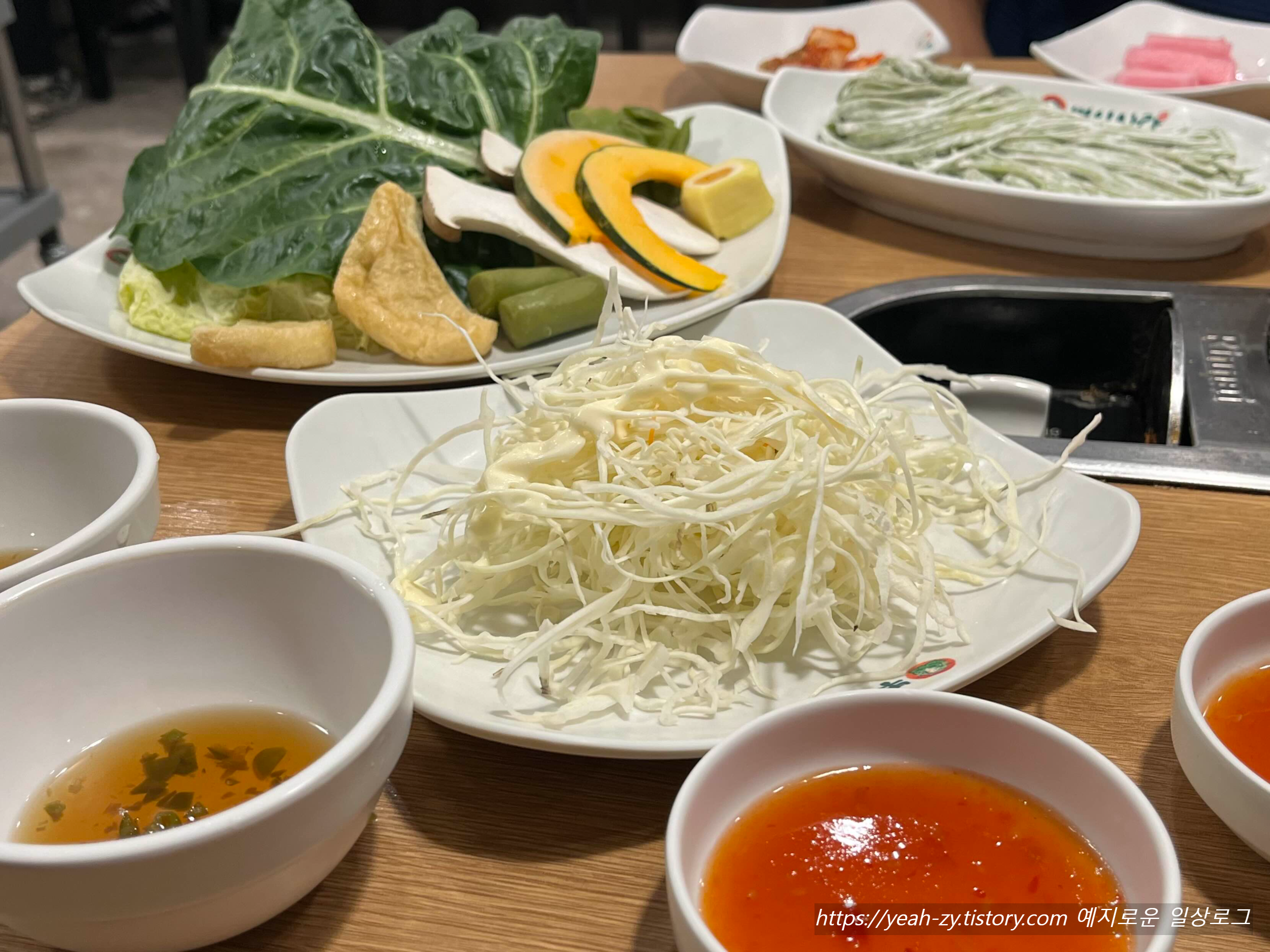 그 외 샤브샤브나 월남쌈 야채나 무료 토핑 가짓수, 선택지, 신선도, 퀄리티를 모두 따지자면 소담촌을 더 추천해요.