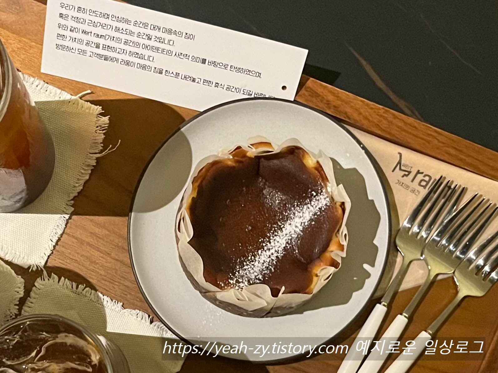 디저트는 바스크 치즈케이크를 시켜봤는데 적당히 달달해서 아메리카노와 조합이 좋아요.