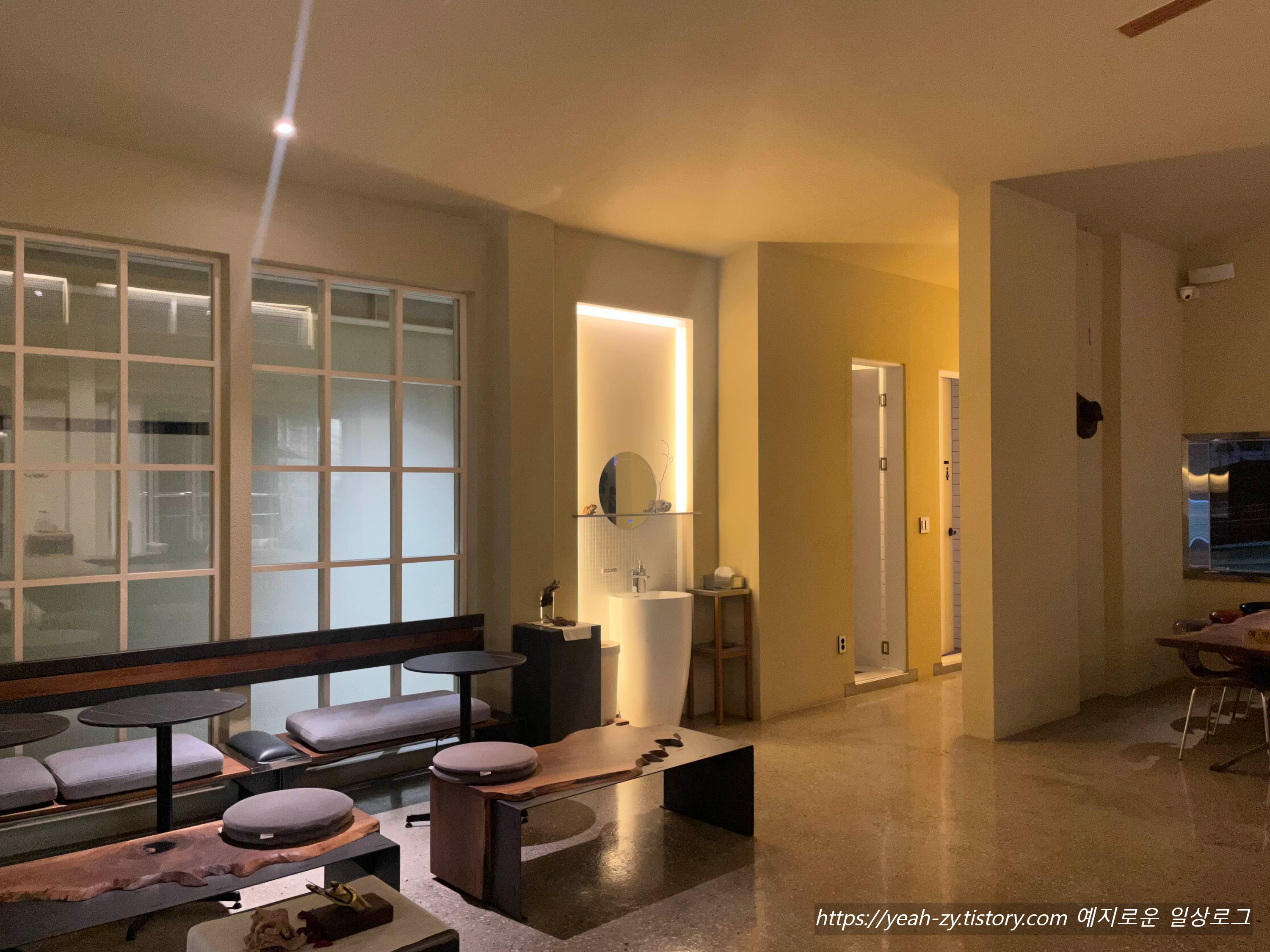 밤에 갔더니 전체적으로 어둑어둑한 조도, 은은한 조명 포인트로 눈이 편안한 느낌이 들어요.