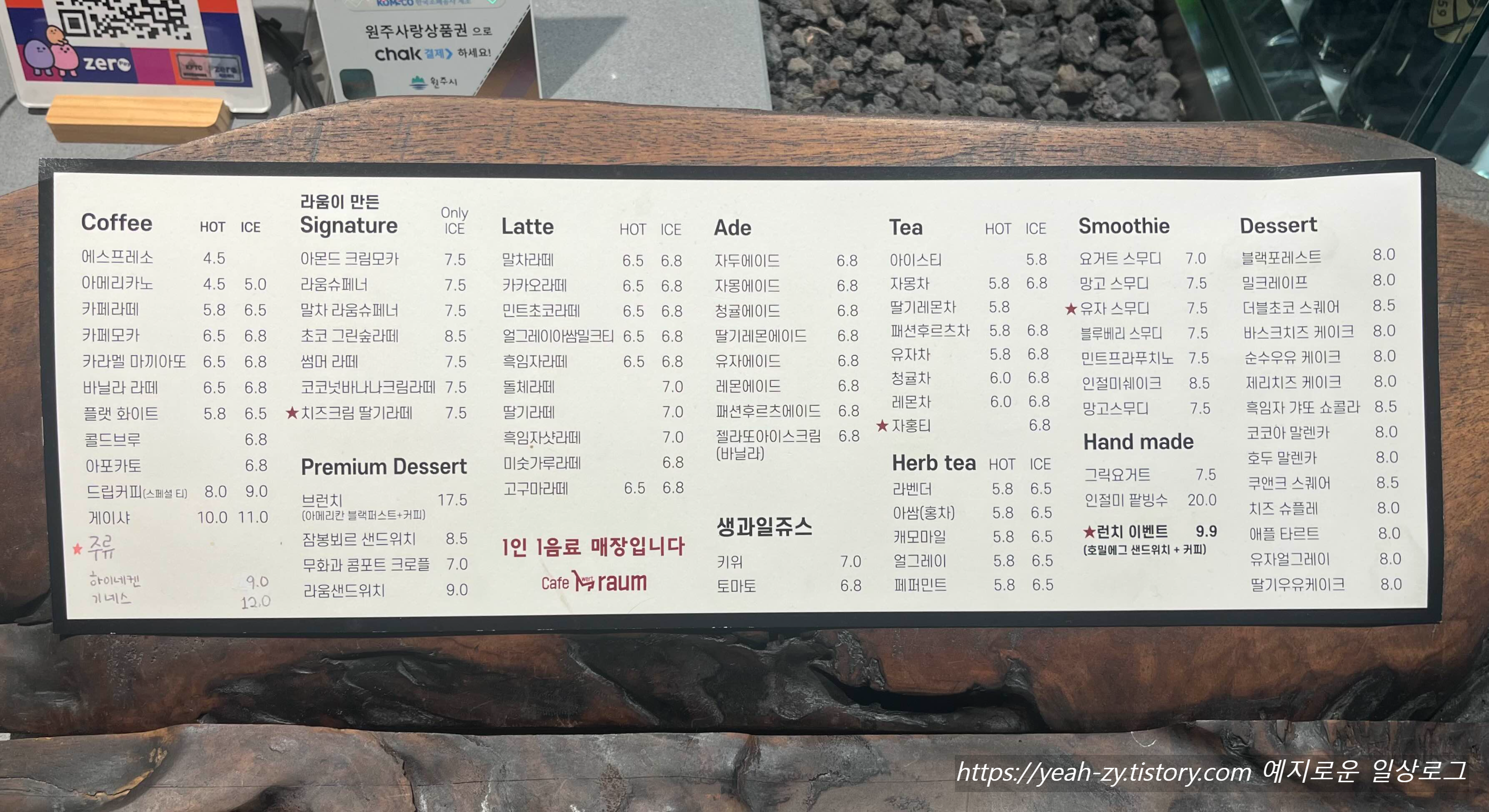 매장은 1인 1음료 주문이 필수라고 하니 참고해 주세요.