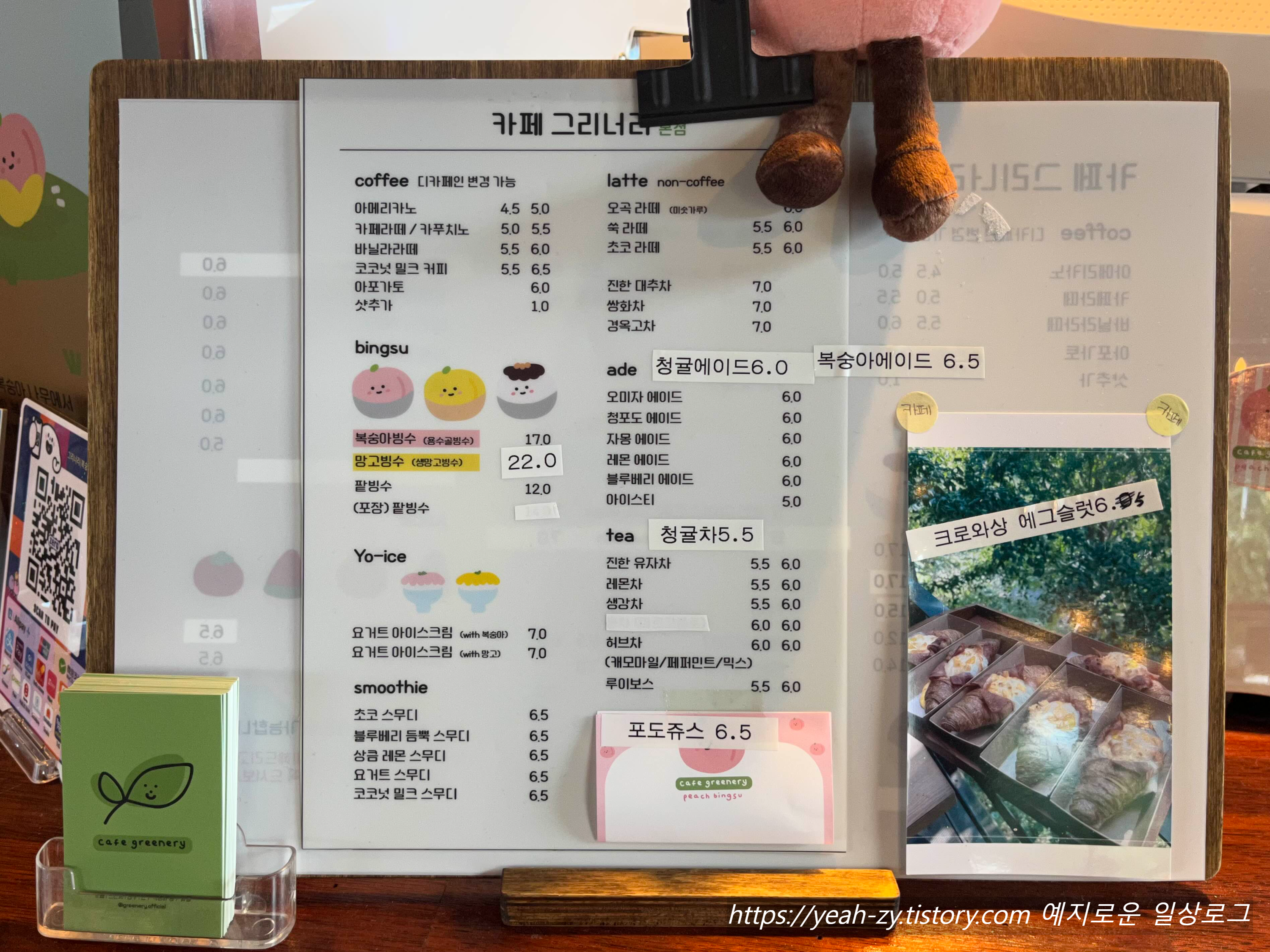 [원주] 그리너리(복숭아빙수점)|원주 특산물 당도 높은 치악산 복숭아로 만든 빙수 전문 카페🍑 본문