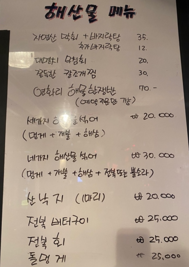 📌 참고로, '연화리 해물 한 쟁반' 메뉴는
