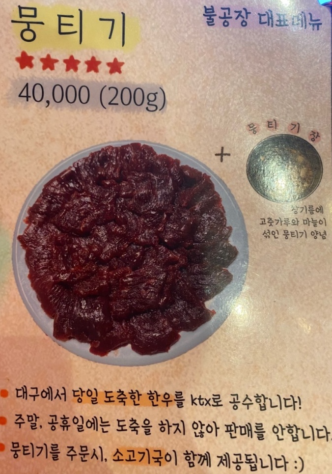 오늘 소개드릴 불공장의 대표 메뉴 중 하나가 바로 이 뭉티기!
