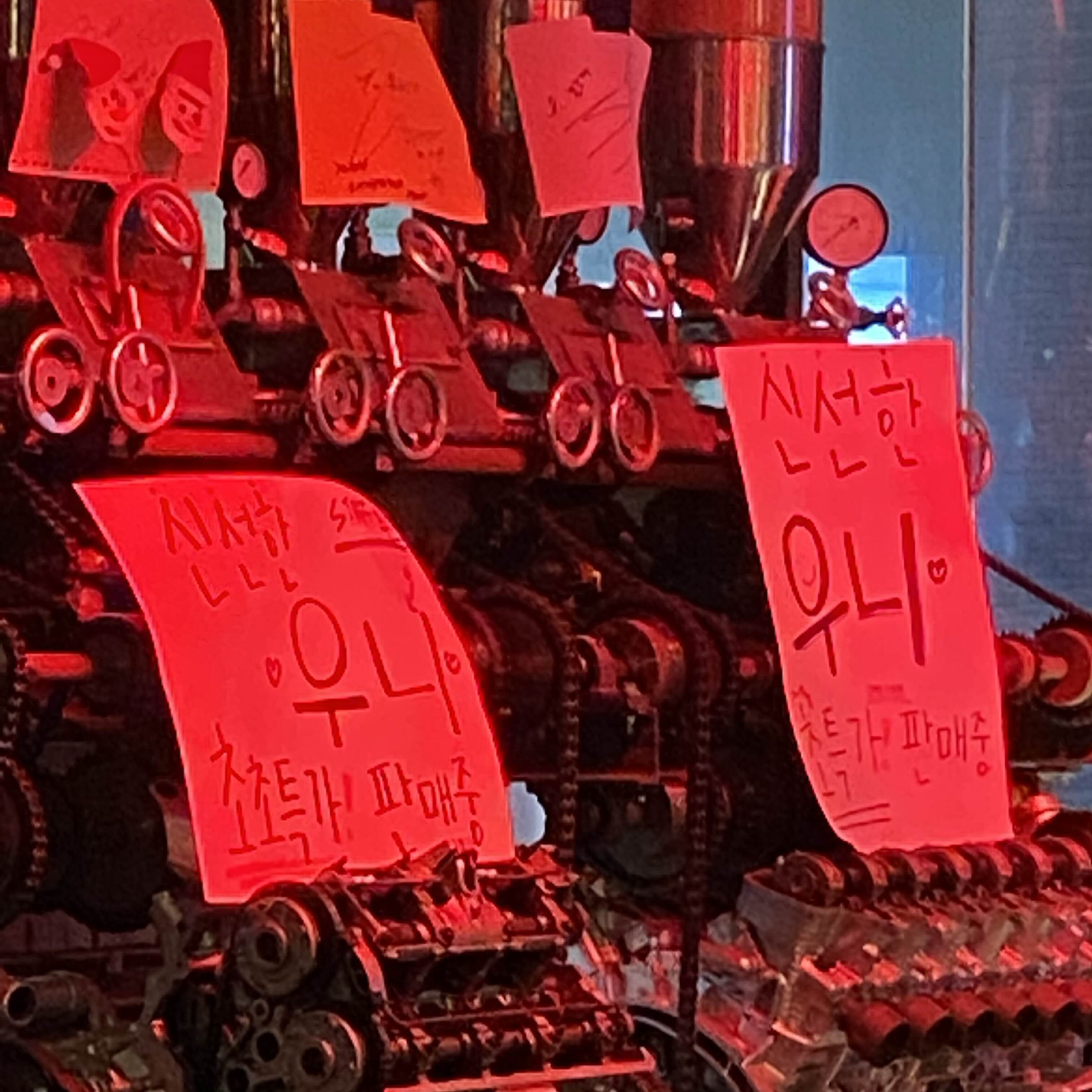 입구에 들어서자마자 정육점과 같은 붉은색 조명이..!